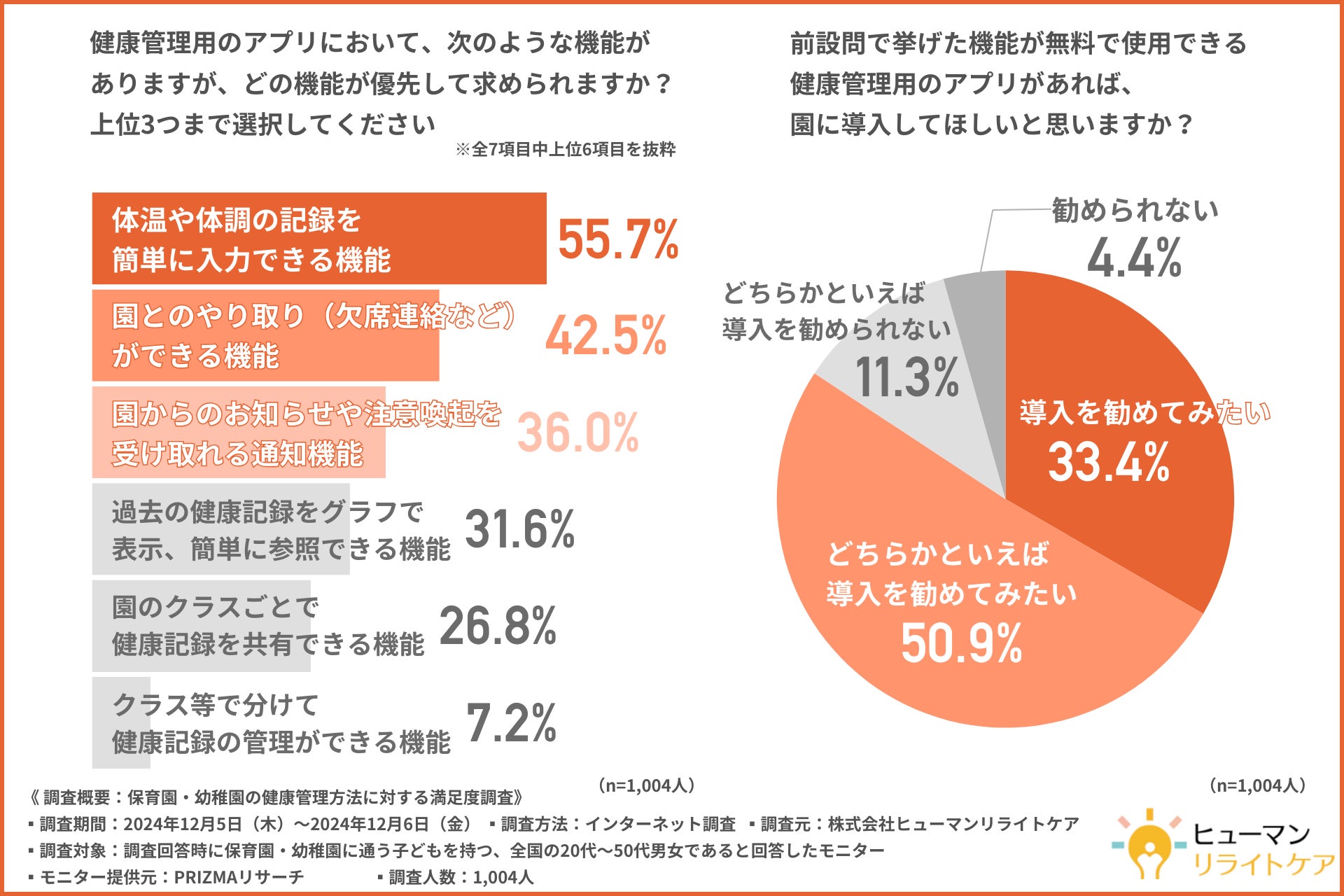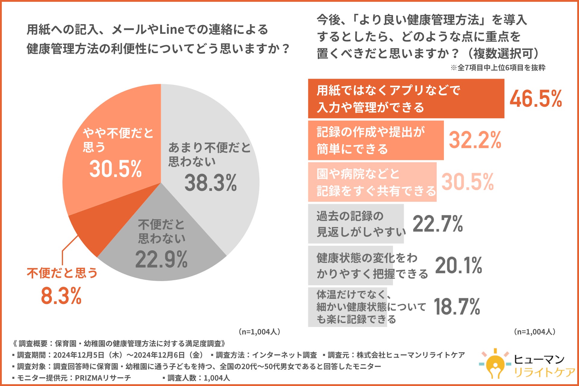 今回の調査で、保育園・幼稚園の現在の健康管理方法や、より良い健康管理方法の導入についての保護者の考えが明らかになりました。