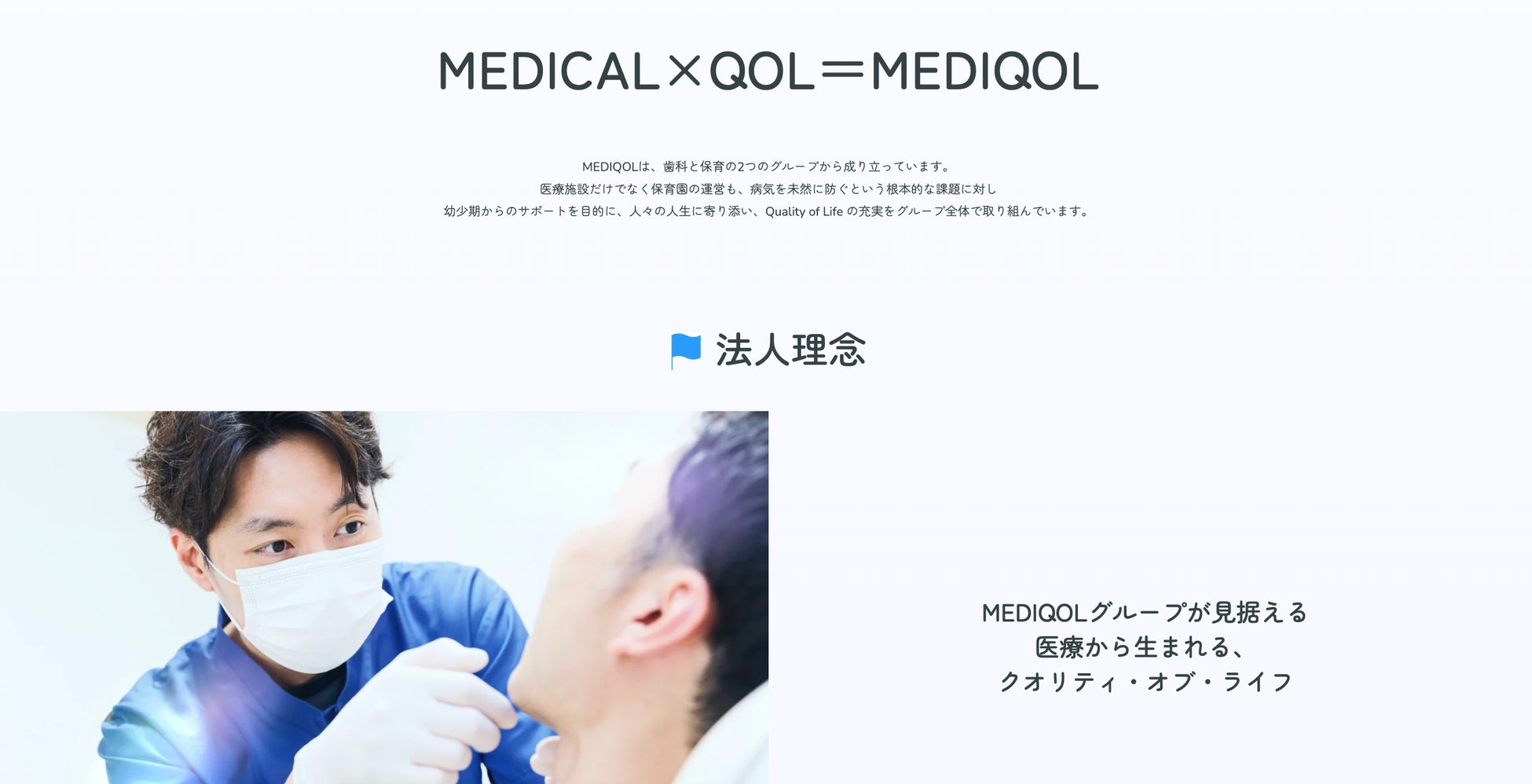 「医療への期待が高まる現代、MEDIQOLグループは「Quality of Life(QOL)」向上を理念に掲げ、歯科医療を基点とした全科横断的な医療連携を進めています。私たちは、科学的根拠(EBM)に基づいた厳選された情報や技術を活用し、患者様一人ひとりの生活に寄り添う医療を提供することで、心身ともに豊かな人生の実現を目指しています。予防医療を重視し、未病段階から健康を守る全人的なケアを大切にしています。当社の理念に共感し成長できる仲間を募集しております。」