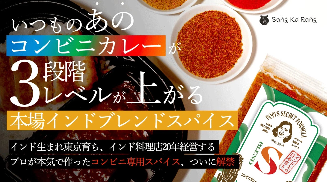 インドと日本を繋ぎ新しい文化を生み出すプロデュースカンパニーのSang Ka Rang(サンカラング)株式会社(本社:東京都千代田区、代表取締役社長:黒田ポピー)はこの度、コンビニカレーのレベルが3段階上がる「本場インドブレンドスパイス」を応援購入サービスMAKUAKEにて11/25(月)9時から先行販売いたします。