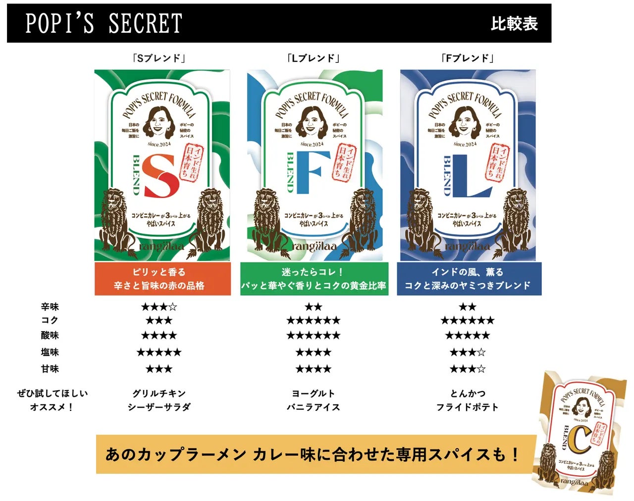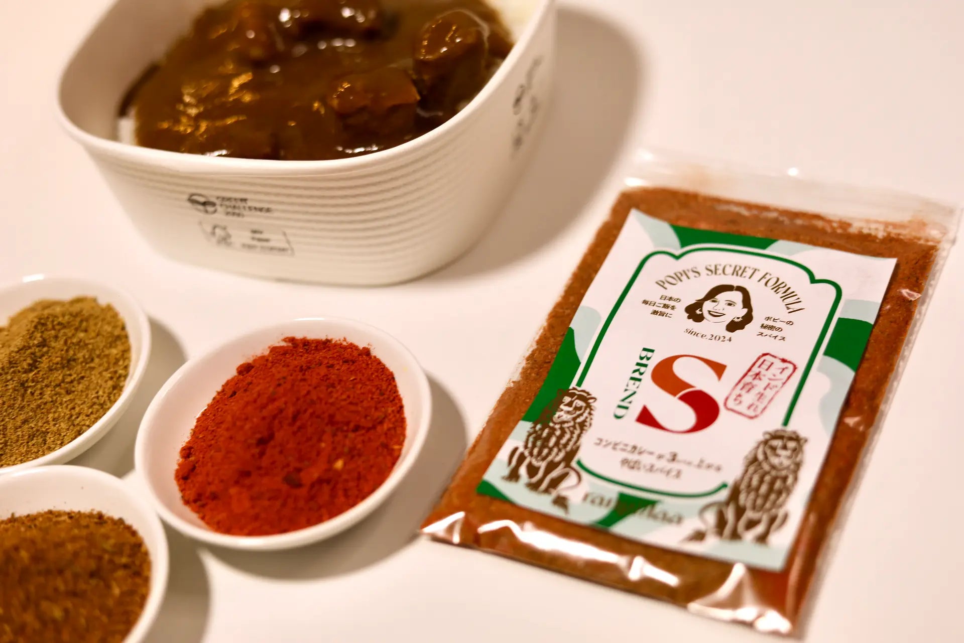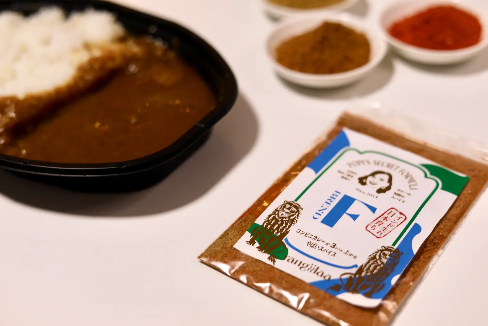 これまで東京で日本人の舌に合わせて作ってきたポピーが、コンビニ各社のカレーを研究し、ふりかけるだけでプロクオリティに跳ね上がるブレンドを独自に開発しました。