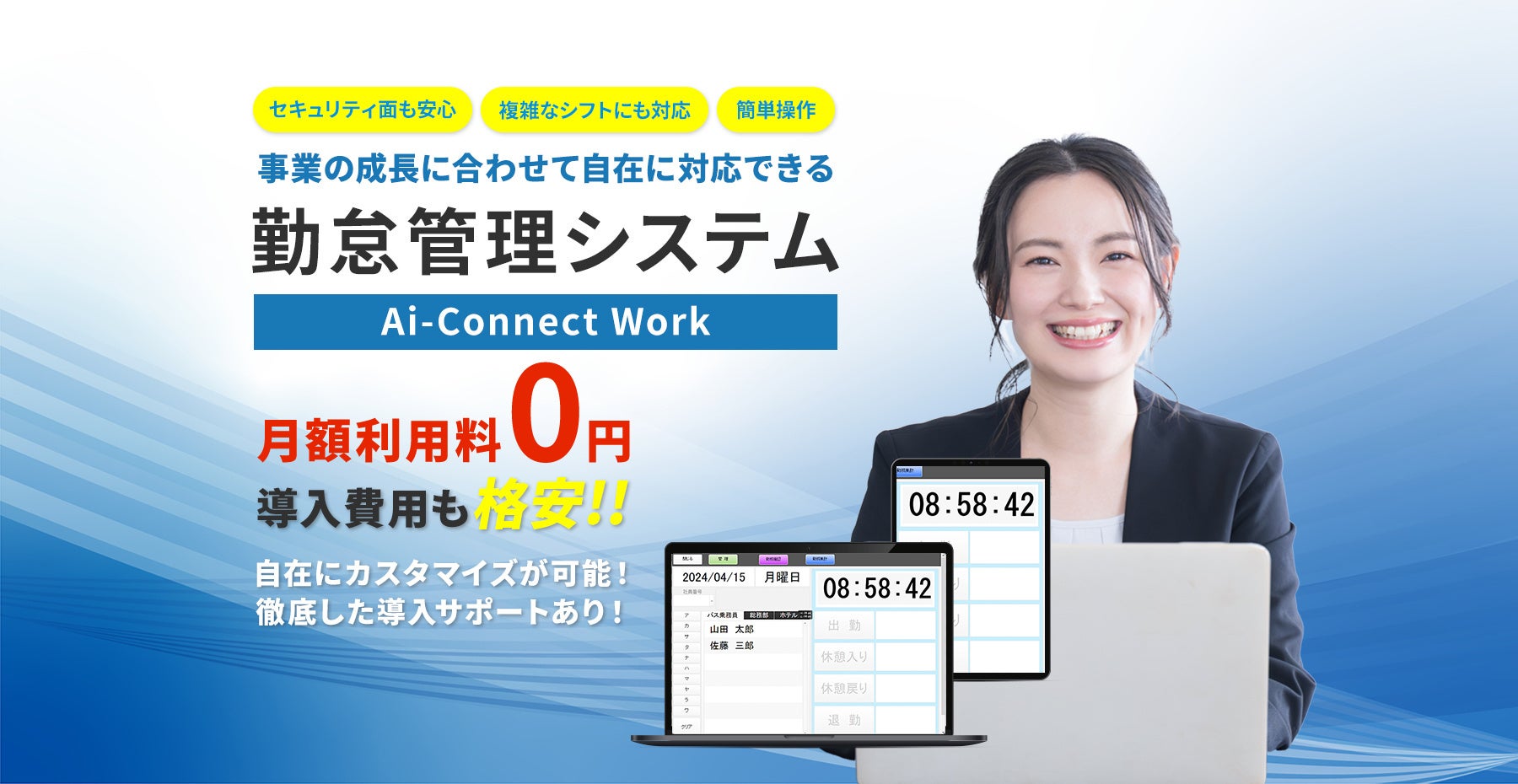 月額0円の勤怠管理ツール「Ai-Connect Work」を株式会社家康コーポレーションがリリース!勤怠管理、シフト調整などを一括管理できることに加え、既存の打刻方法や給与計算システムにも連携可能に!