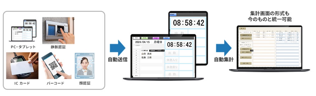 また既存の打刻方法や給与計算システムとの連携も可能で、