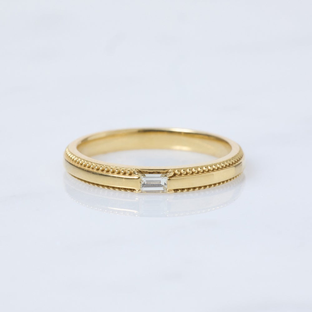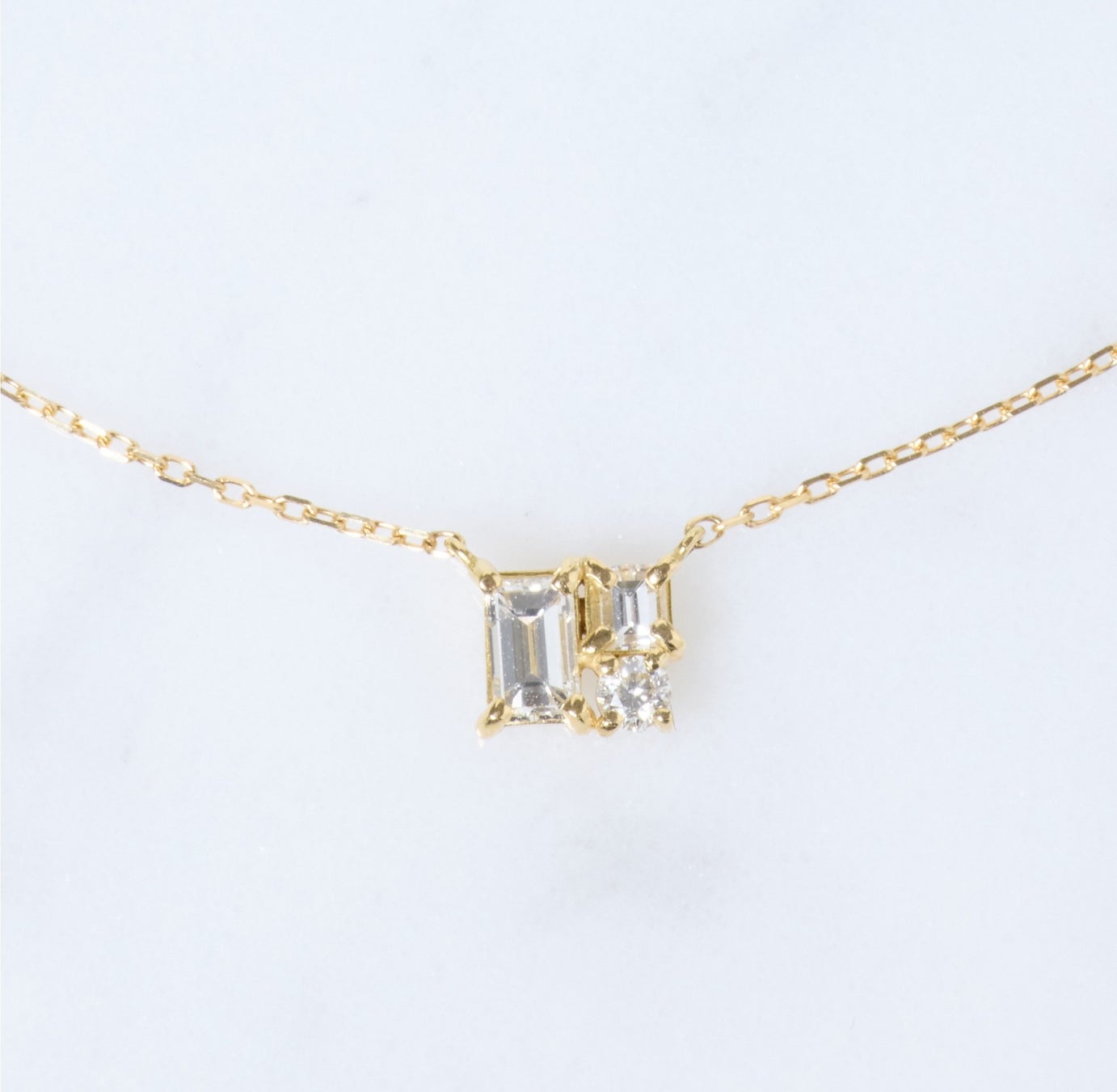 ファーストコレクションでは、サファイアとダイヤモンドをあしらったリング(132,000円/税込)や、18Kバゲット&ラウンドとダイヤモンドのネックレス(85,800円/税込)、ダイヤモンドフープピアス(92,400円/税込)、18Kダイヤモンドリング(138,600 円/税込)のほか、K10やK18、プラチナを使用したアクセサリーを展開致します。