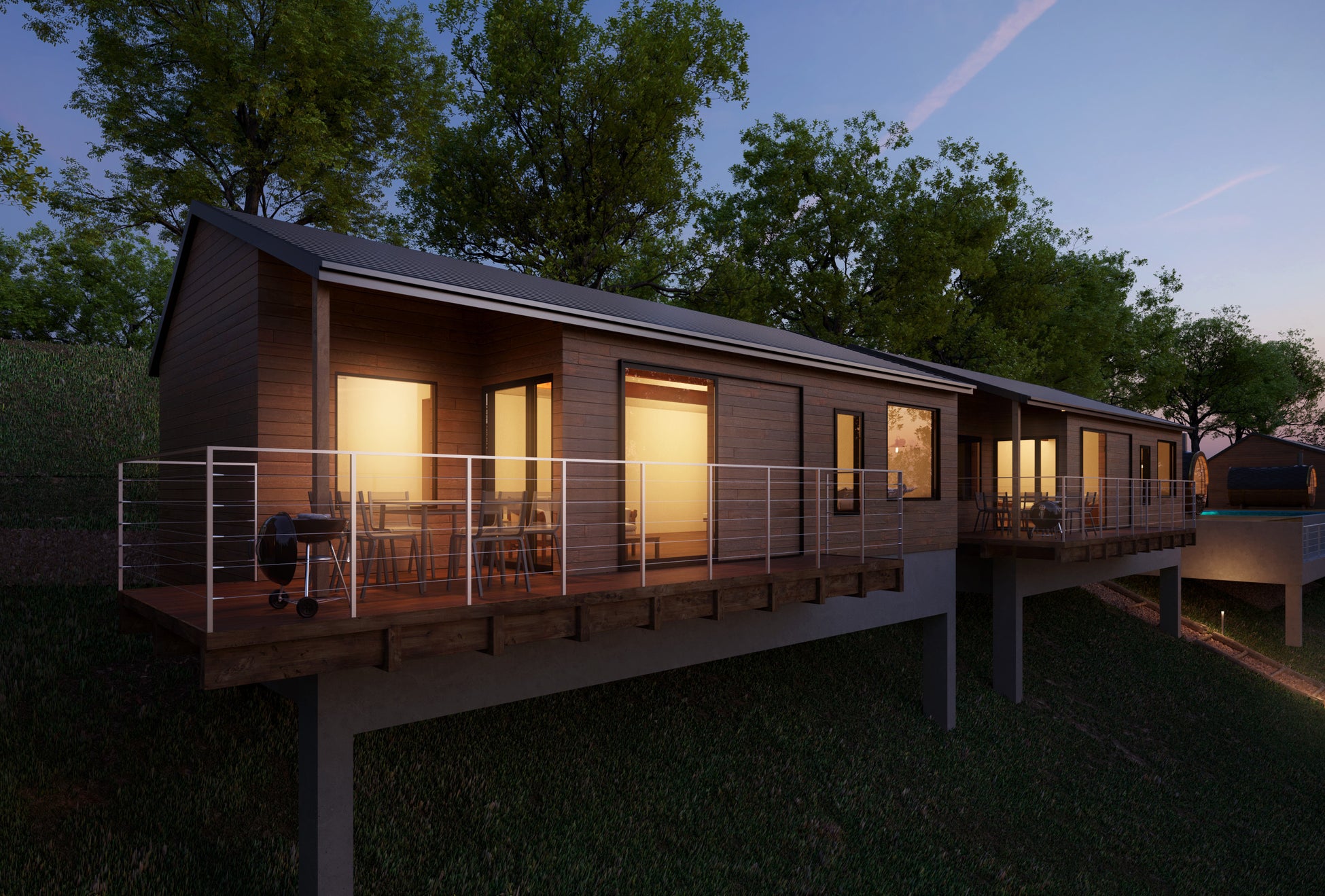 秩父のまちを一望できる本施設は、全6棟。そのうちの2棟のコテージは、愛犬とともに宿泊することができます。敷地内には、サウナやプール、ドッグランを併設し、思い思いにお寛ぎいただけます。お食事は、テラスで楽しむBBQの夕食と、水が綺麗な地域ならではの食文化を味わう和朝食をご一緒に提供予定です。