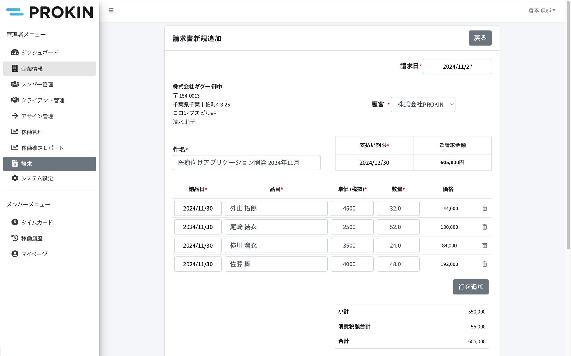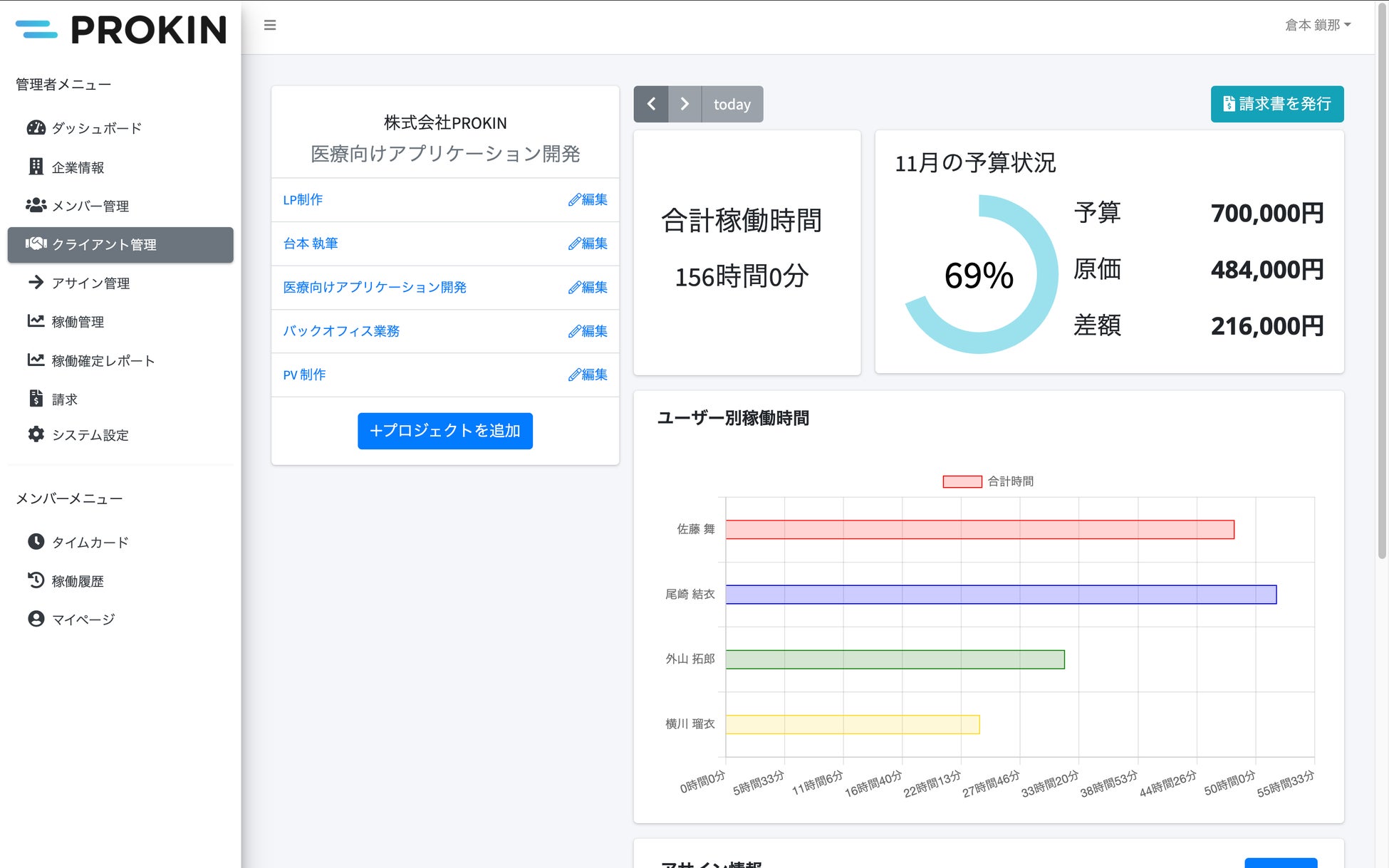 「プロ勤」は、プロジェクト単位での時間管理を可能にし、請求処理や予算管理の効率化、働き方の可視化を実現します。