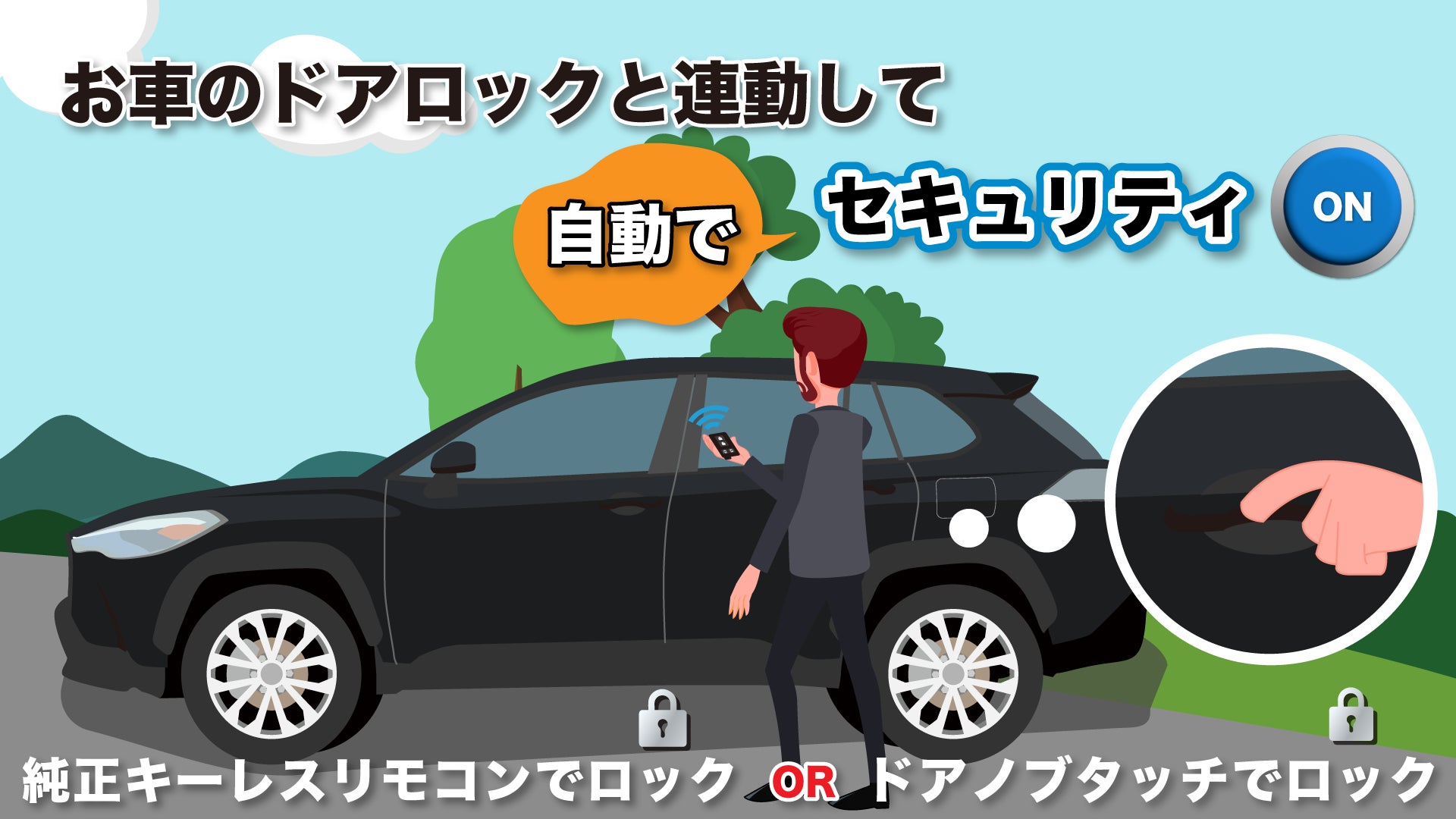 専用アプリをインストールし、認証設定が完了したスマートフォンを所持した状態で車両から離れることで自動的に「セキュリティON」、近づくことで「セキュリティOFF」となります。