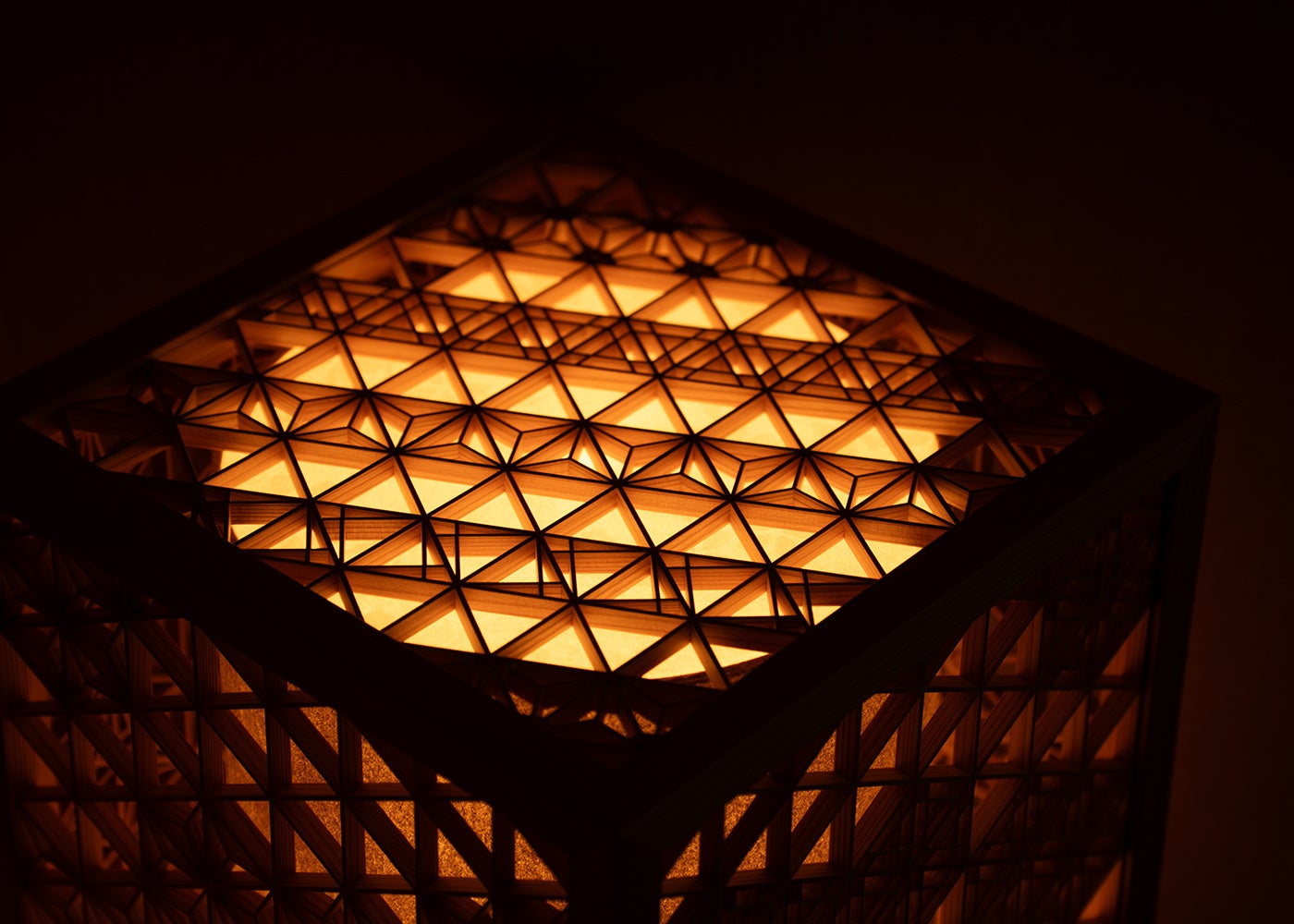 lino oneの筐体は新潟県加茂市で創業150年を超える老舗「大湊文吉商店」の職人が丁寧に組み上げる組子細工。細い木片を釘を使わずに組み合わせ、緻密な幾何学紋様を生み出します。また、木材は高級木材として知られる「秋田杉」を使用。木目が細かく強度に優れ、狂いが少ないのが特長です。息を呑むような美しさが、空間に和の華やぎをそえ、豊かな時間を演出します。
