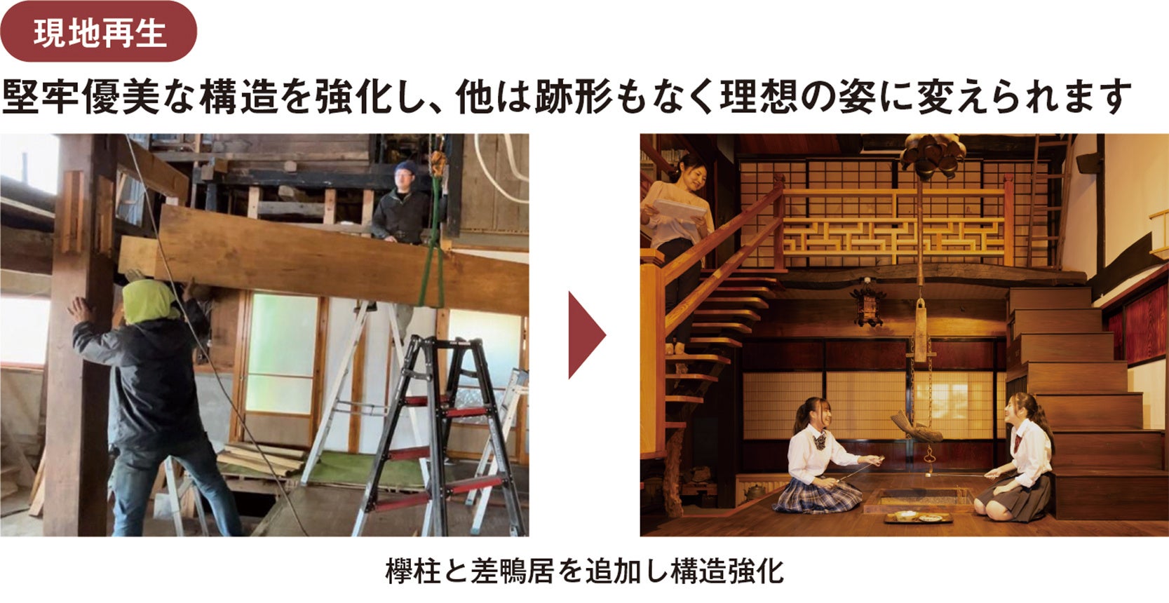 戦後のリフォームで失われた堅牢優美な古民家建築を令和に蘇らせる技法です。