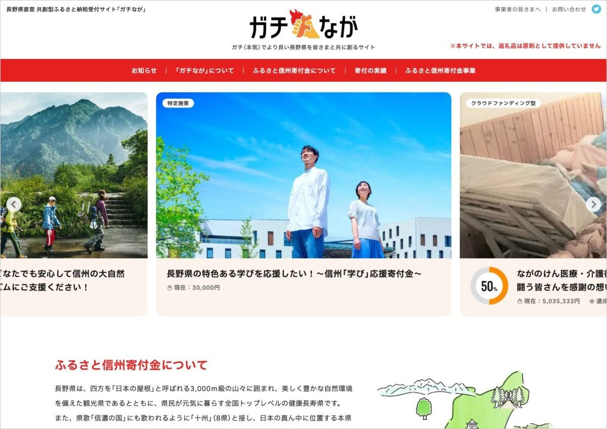 長野県直営共創型ふるさと納税受付サイト「ガチなが」