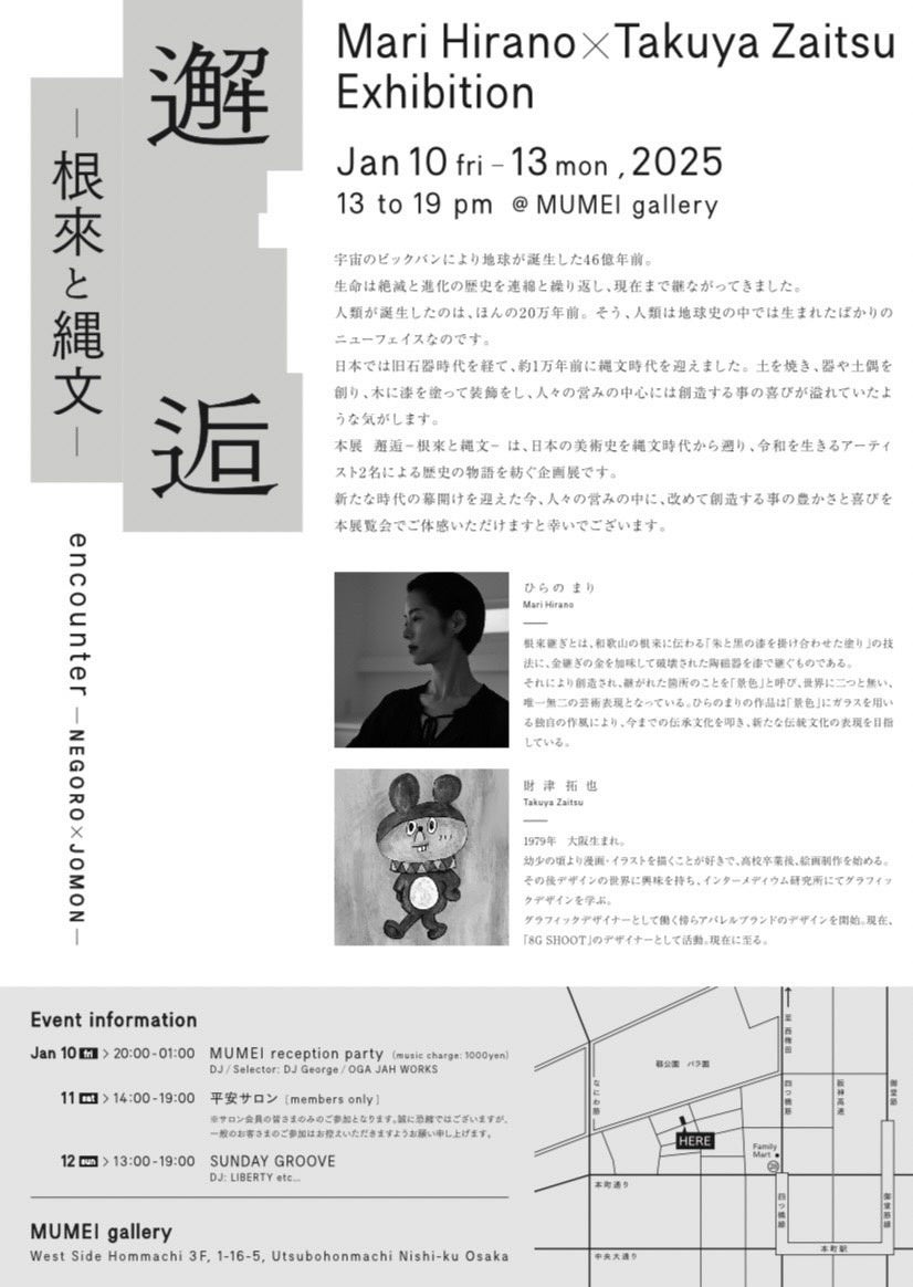ひらのまり×財津拓也 企画展「邂逅-根來と縄文-」開催概要