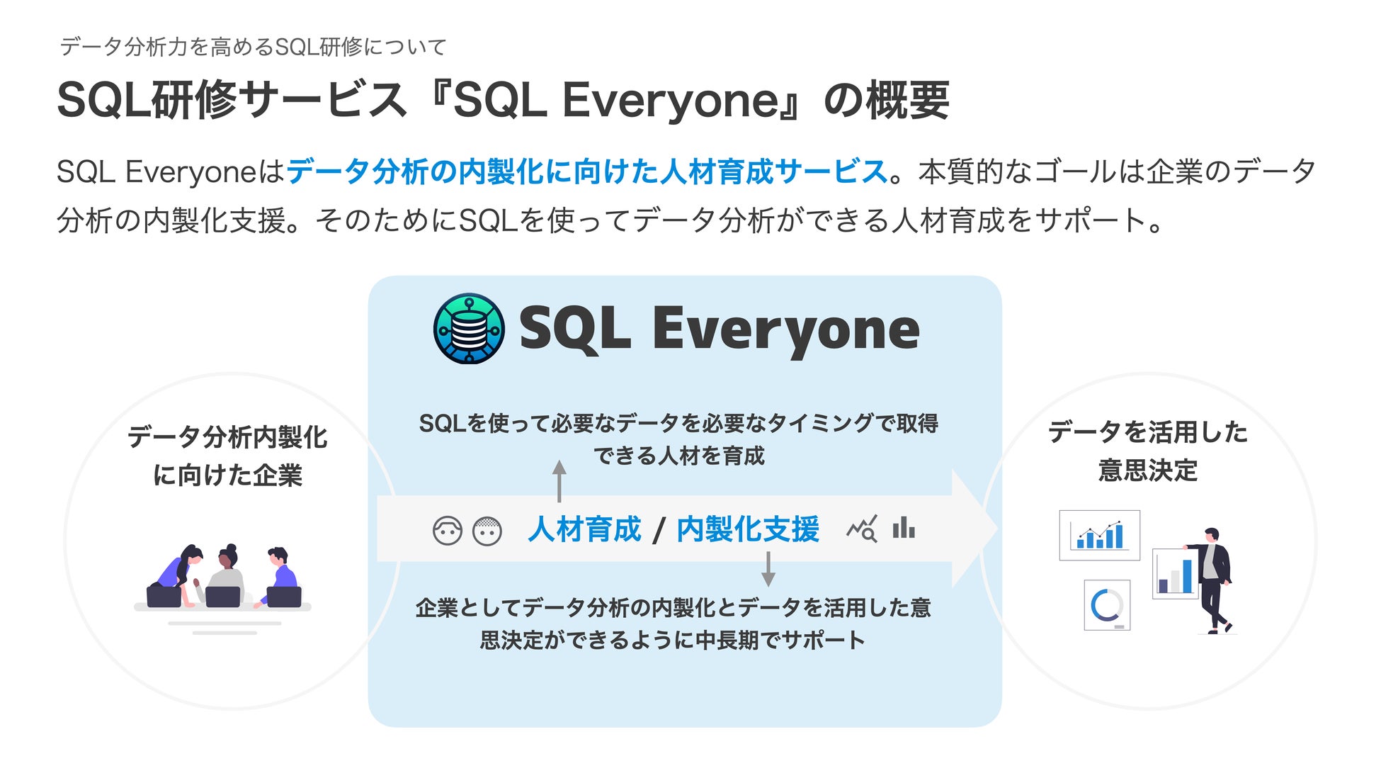 データ分析内製化に向けた人材育成サービス『SQL Everyone』の説明