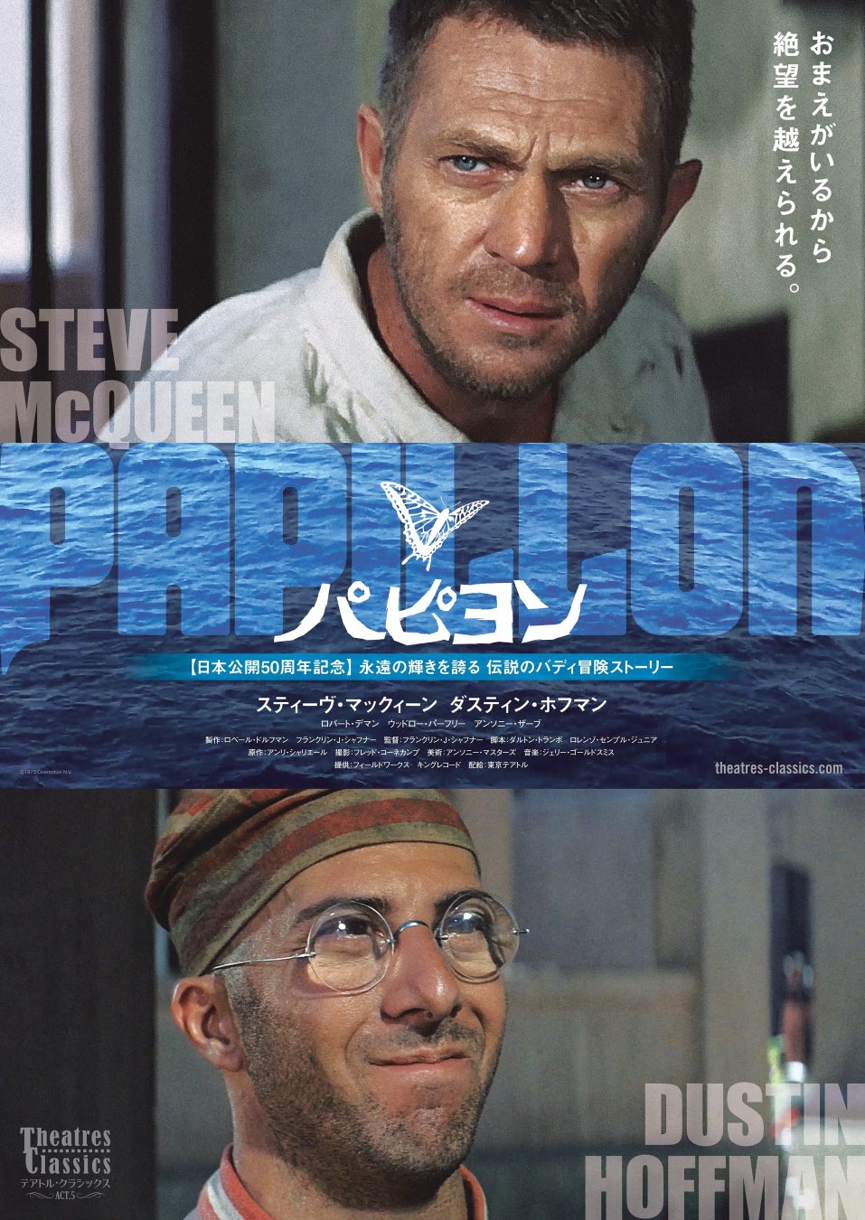 スティーヴ・マックィーン&ダスティン・ホフマン主演の伝説的映画『パピヨン』が、日本公開から50周年を記念して、2025年1月31日(金)より全国公開されることが決定しました!『パピヨン』は、自由を求めて執念の脱獄に賭けた男の凄絶な体験を綴ったアンリ・シャリエールの自伝的小説を、豪華製作陣が映像化した伝説的なバディ冒険物語。圧倒的なスケールで今も世界中で語り継がれる本作品を、東京テアトルによるクラシック映画再上映企画「テアトル・クラシックス ACT.5」として上映します。
