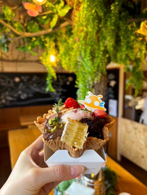 季節のはちみつ、巣蜜、ミツバチ花粉など、好みに合わせたカスタマイズが可能です。店内カフェでは、コーヒーや紅茶とともに、ゆったりとした時間をお楽しみいただけます。