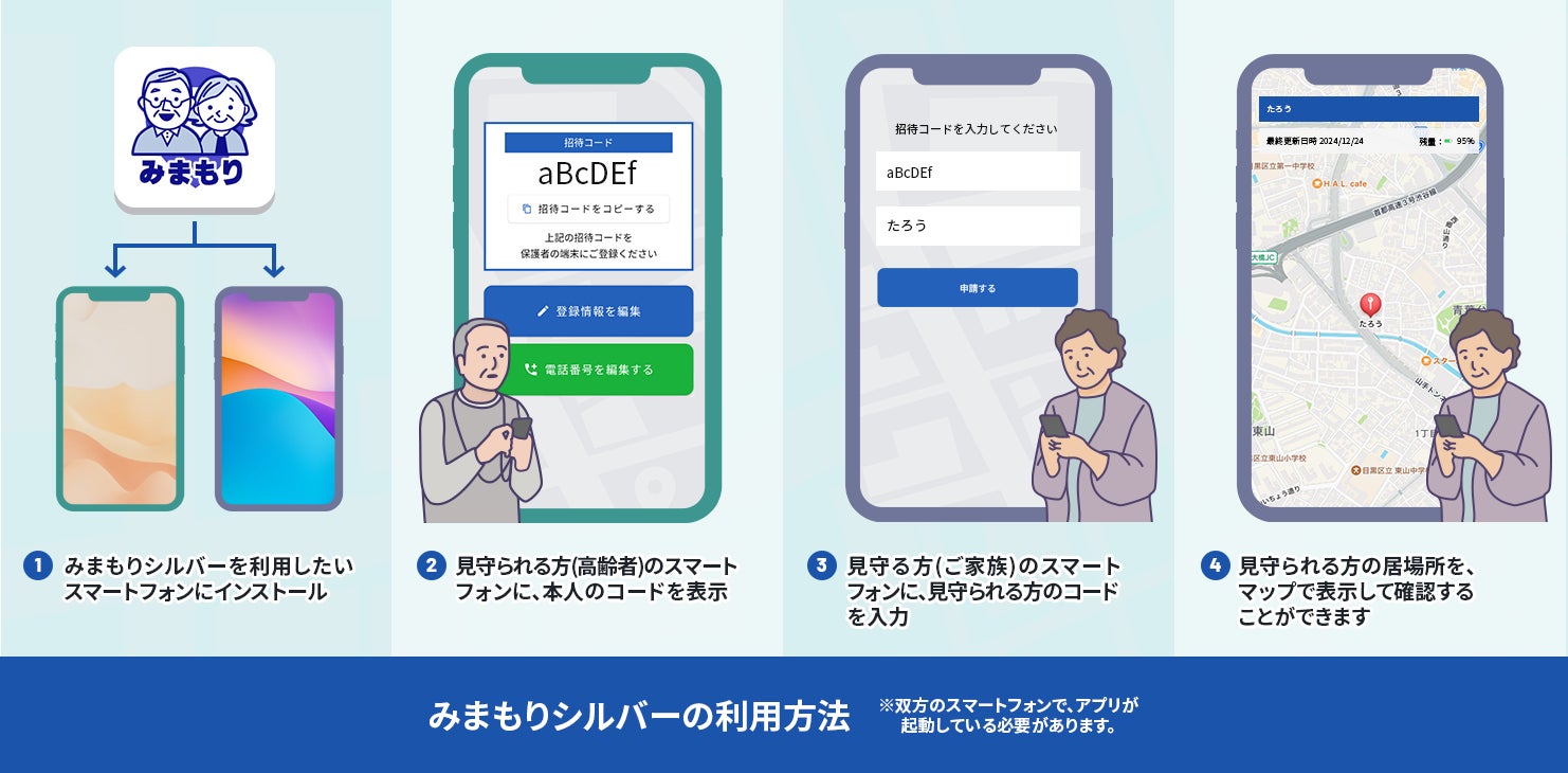 メールアドレスを持っていない方でも、すぐに利用できる高齢者向け位置情報共有アプリ