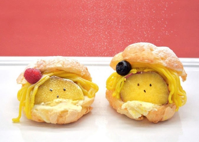 サックリふわふわな食感が広がる、粉雪が降り注ぐかわいらしさ満点なシュー×さつまいもスイーツ。特別な製法でつくるシュークリームの皮に包まれるのは、丁寧に蒸したさつまいも・紅はるか。さらにさつまいもの上に、手づくりのカスタードクリームと、さつまいも・紅はるかのモンブランクリームをたっぷりと。濃厚ながらも優しい甘さのクリームと、さつまいも本来の美味しさが口いっぱいに広がる一品です。35年間和菓子職人を務める職人の技が光る、地元・長野県産素材にこだわった『しなのいもこといもみ』で、ほっこり幸せなひとときをお届けします。