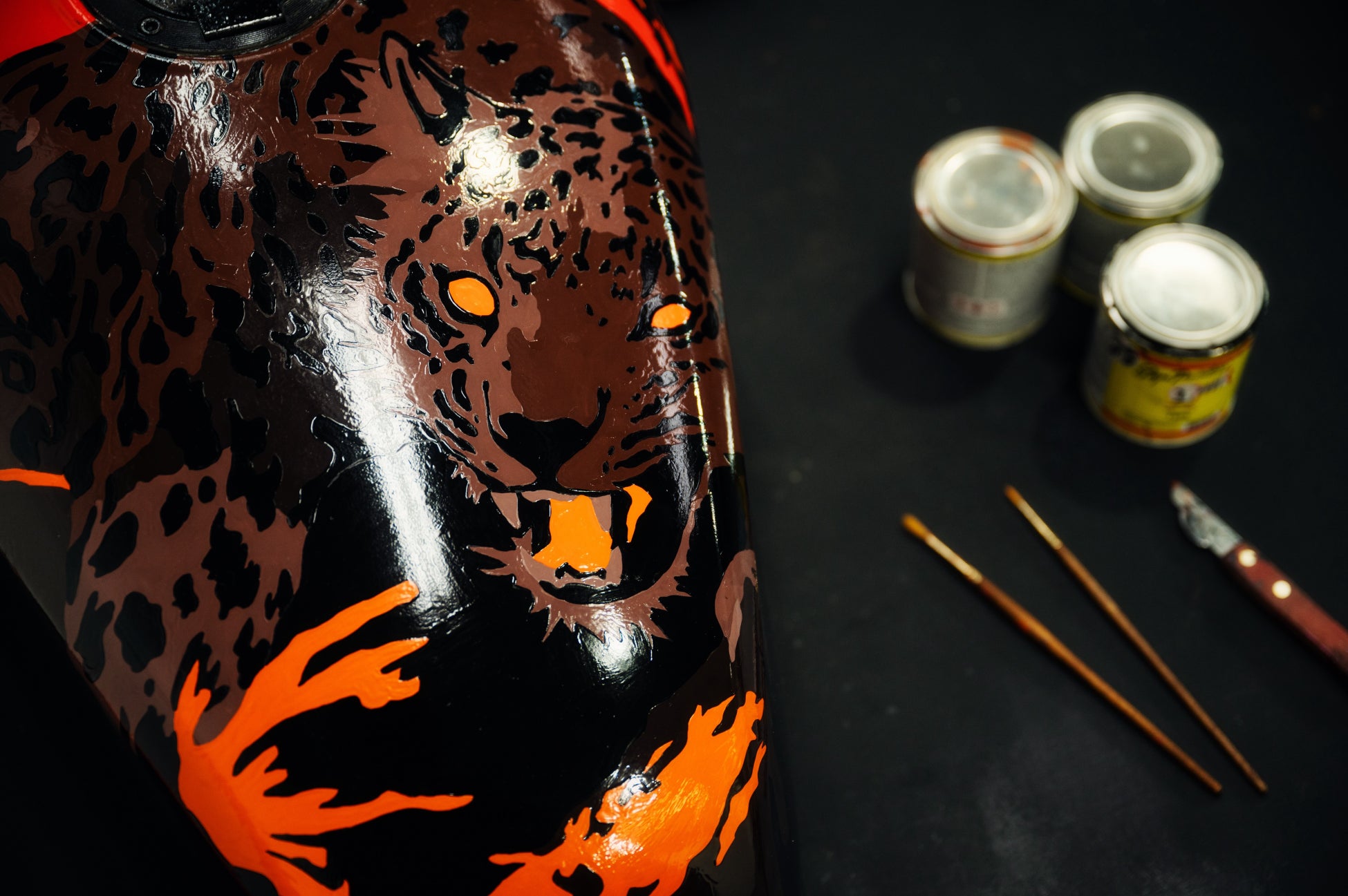 Peaches. Japanは、今回のプロジェクトではJinya Yamakawa氏による現代アートと、荒々しくオイルにまみれたメカニカルな旧車會の世界との対比に焦点を当てました。Jinya Yamakawa氏は、スピードと勝利が最重要とされるモータースポーツのバックグラウンドを持ちながら、繊細で丹念な手描きのアートをバイクの燃料タンクやカウル全体に施すことで、驚くべき対比を生み出しています。そのスタイルは旧車會バイクの攻めの姿勢を持つ性質に劣らず、大胆で独自性に富んでいます。