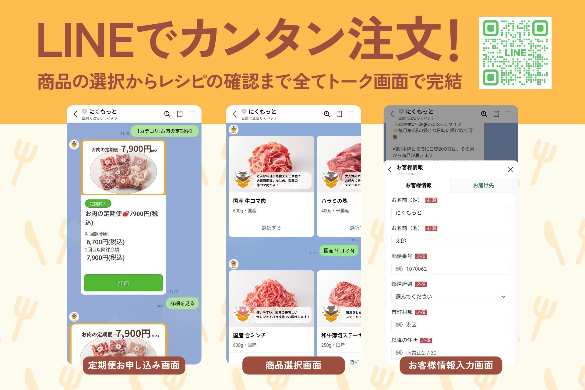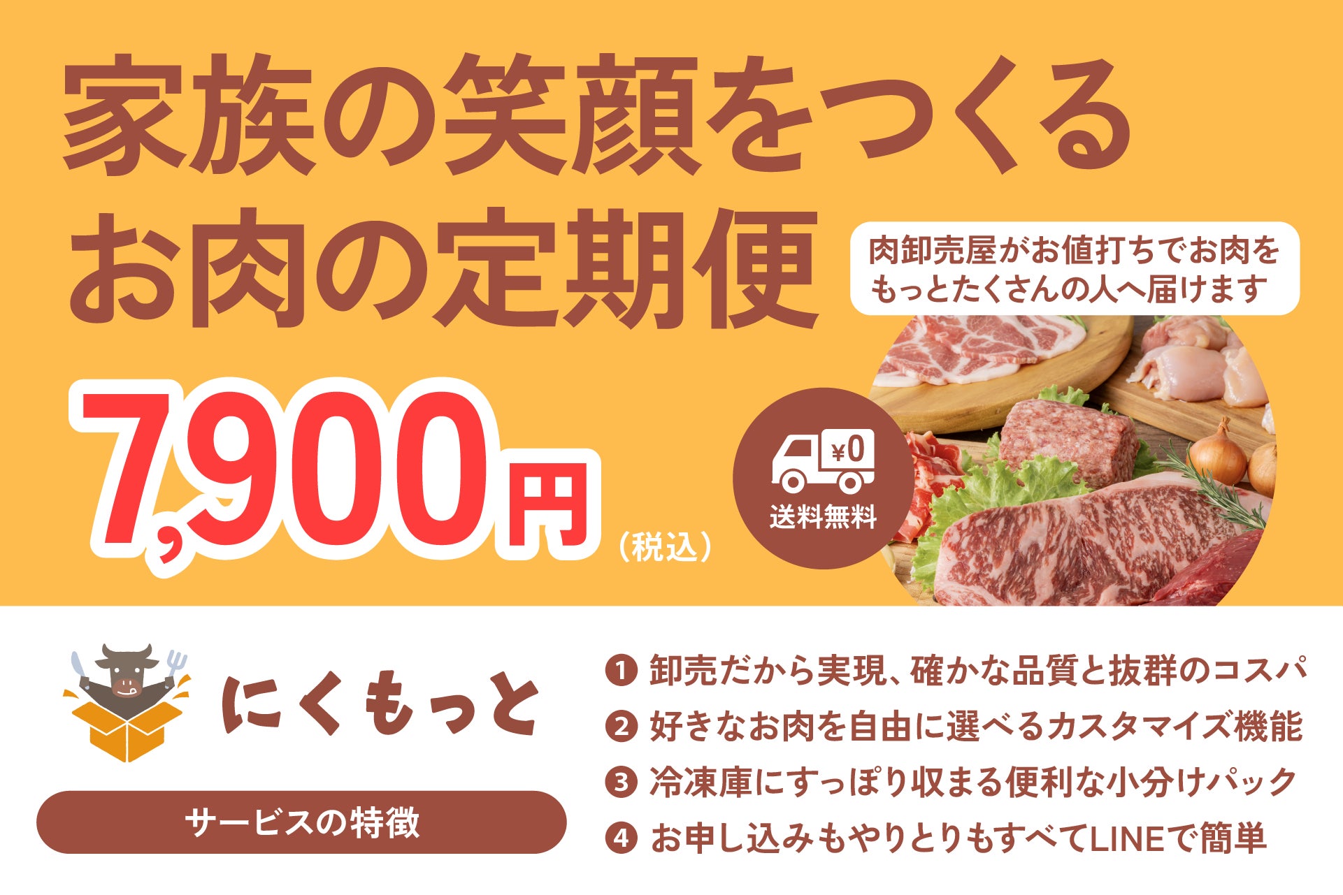 にくもっとはお肉のプロが厳選したお肉をLINEで簡単注文、好きに選べる定期便サービスです。