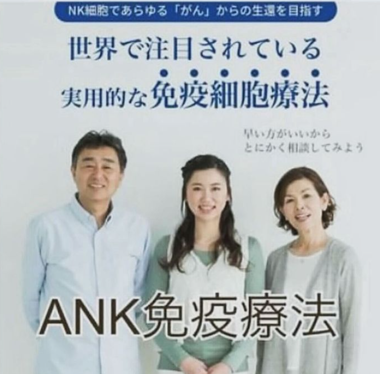 2000年から京都大の治験からスタートしたANK癌免疫療法です。従来、免疫治療は感染担当細胞である樹状細胞や、T細胞が主で行われほとんど効果が無いことが判明しました。また京都大の本庶先生が免疫チェックポイントを発見しT細胞は癌細胞にブロックされることを証明しノーベル賞を受賞しました。癌免疫とはNK細胞の癌細胞殺傷を意味します。しかしながらNK細胞の活性を上げて培養することは世界的に不可能とされていました。NK細胞に強い免疫刺激物質を投与すると破裂してしまうのです。京都大の重鎮の研究者は、複数の免疫刺激物質の組み合わせと培養液の開発でNK細胞の活性最大にしたまま大量培養する方法を開発しました。2000年から治験終了後に一般診療を京都大から出て京都の専門クリニックで開始しました。活性最大のNK細胞は癌腫を問わず、癌幹細胞をも殺傷し絶滅させることが出来ます。白血病の中でも悪性度の高い成人T細胞白血病に関しても複数の長期生存を可能としており海外の有力医学雑誌に論文掲載(BMJなど)されています。現在は、全国の提携医療機関でANK癌免疫療法が受けられます。