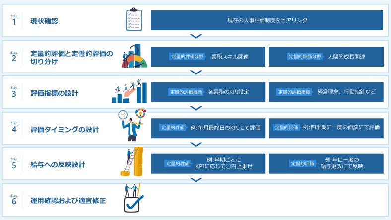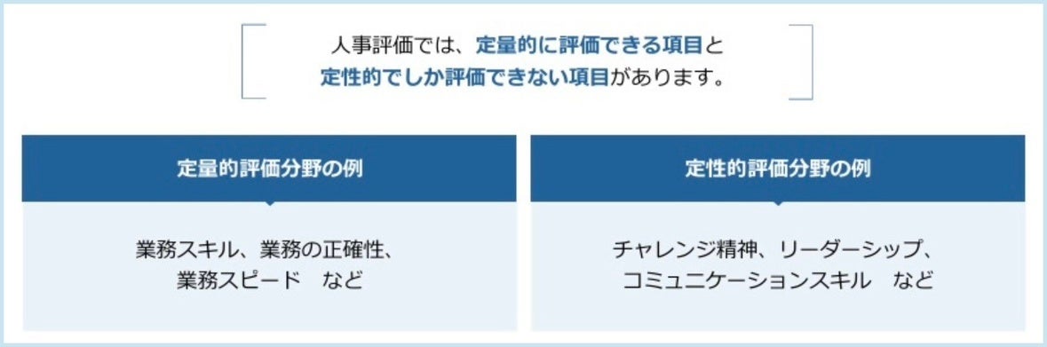 定量評価と定性評価を適切に整理。可能な限り定量評価に置き換え、公正な評価基準を確立します。