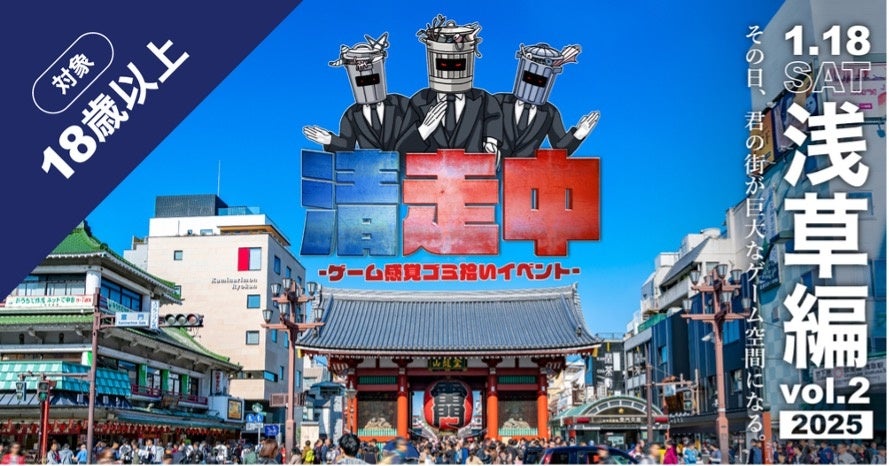 浅草寺や仲見世商店街周辺を舞台に、ゲーム感覚でゴミ拾いを楽しむ「清走中」を開催。ごみのポイ捨て問題への意識を醸成しながら、浅草地区の美化を推進します。
