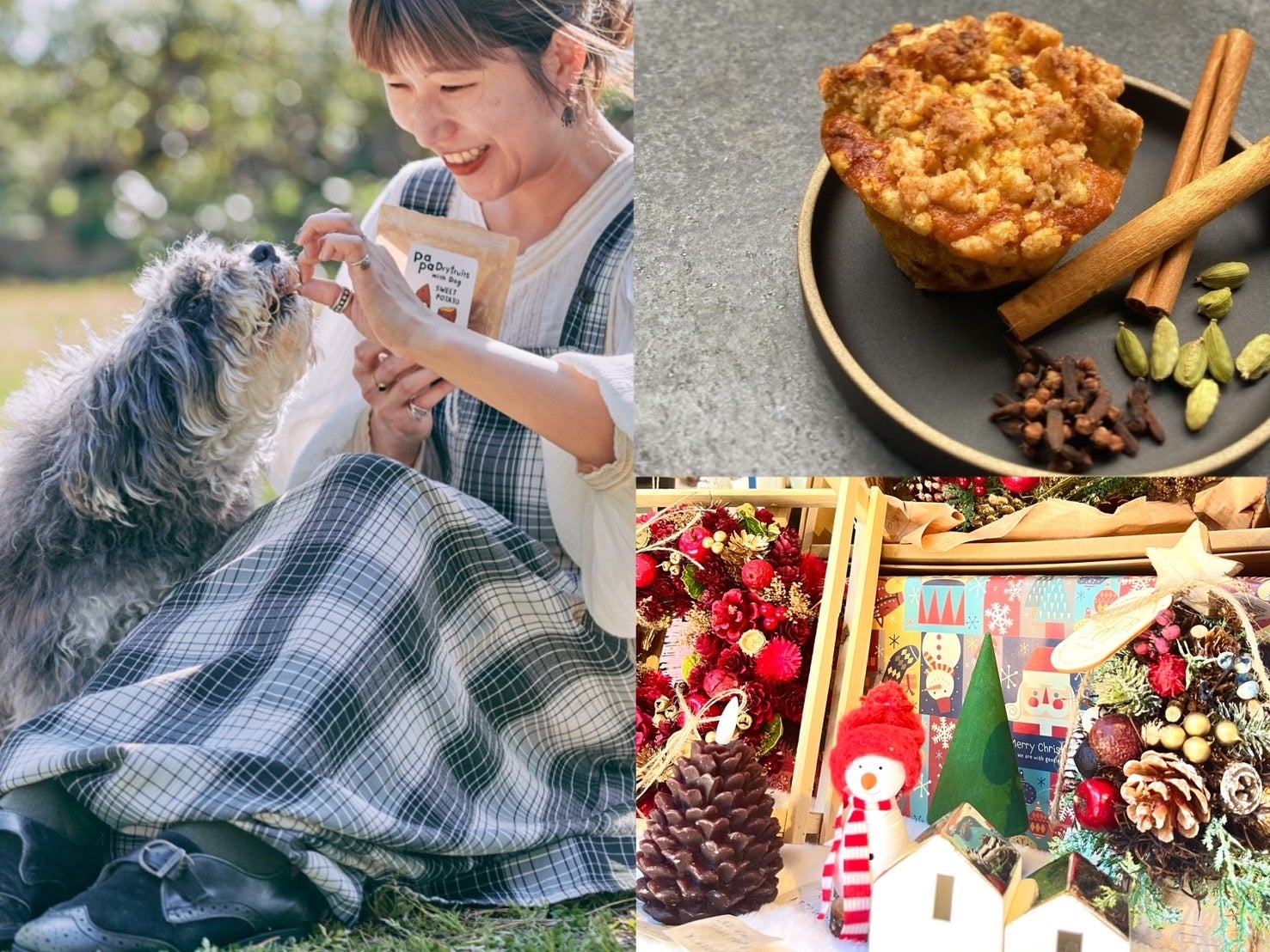 クリスマスシーズンにぴったりな華やかな雑貨類や焼き菓子、リースやスワッグなどのほか、ペットの似顔絵ライブペイントやペットグッズなど、温かみのあるグッズを取り揃えたマーケットが出店します。クリスマスを彩る素敵な一品をお探しください。