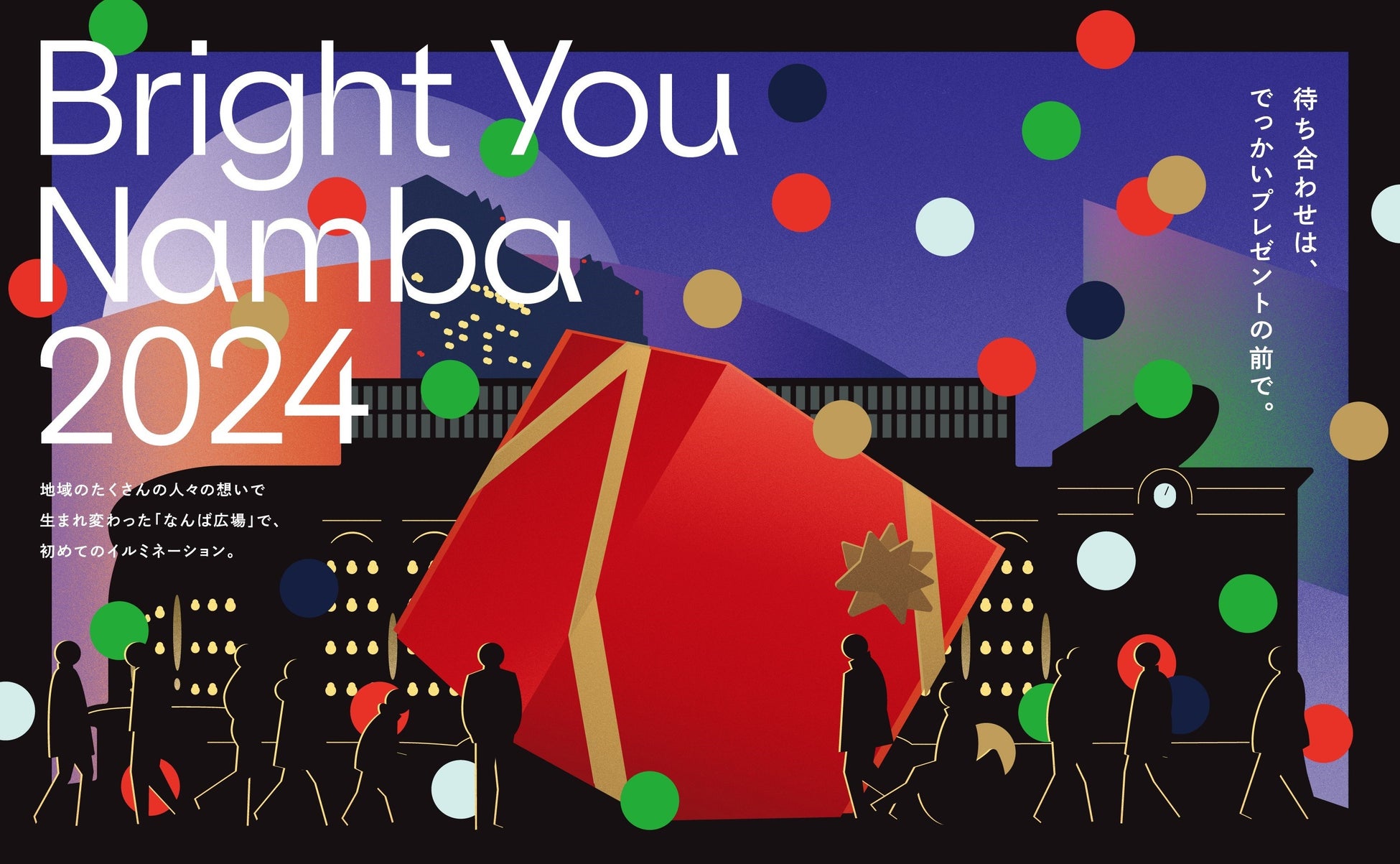 大阪・ミナミの企業や商店街など116団体(2024年11月時点)で組織する「ミナミまち育てネットワーク」(会長:遠北 光彦 南海電気鉄道株式会社代表取締役会長)は、2024年12月6日(金)~12月25日(水)に、「なんば広場」において、イルミネーション「Bright You Namba 2024」を実施します。「Bright You Namba 2024」は、難波駅前のタクシープールや車道等の道路空間を再編し、昨年11月に誕生した歩行者空間「なんば広場」で実施する、新たな冬のイルミネーションです。