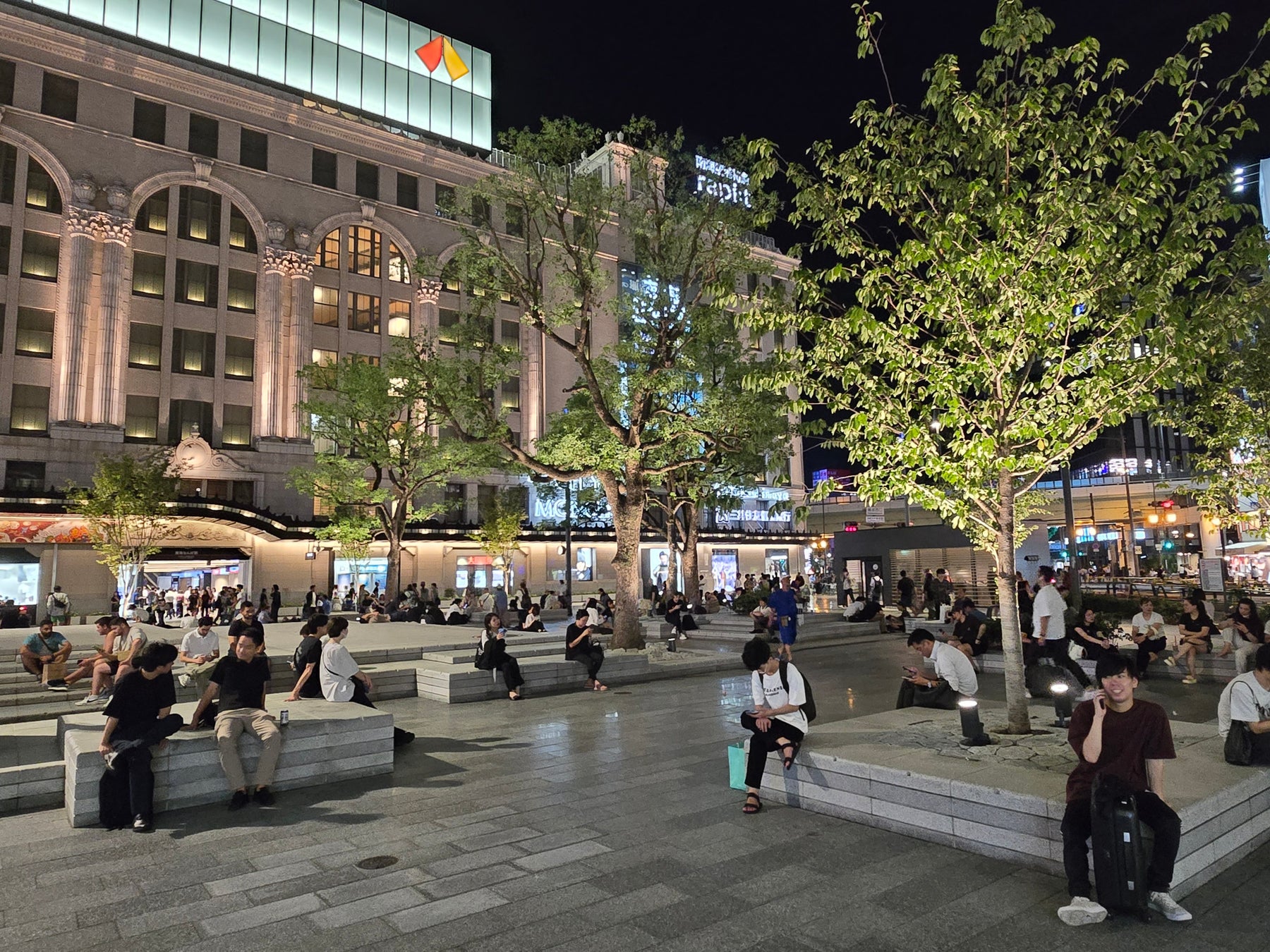 「なんば広場」は、大阪市と地域関係者が官民一体となって進める「なんば駅周辺における空間再編推進事業」の一環で整備されたエリアです。かつては、タクシープールや車道などの道路空間でしたが、昨年11月、広さ約6000平方メートルの歩行者空間として一部先行オープンしました。「大阪のおもてなし玄関口」をコンセプトに、世界を引き付ける観光拠点「ミナミ」にふさわしい上質で居心地の良い空間の創出に加え、イベントを実施することでまちの賑わいを創出し地域回遊の拠点となることを目指します。