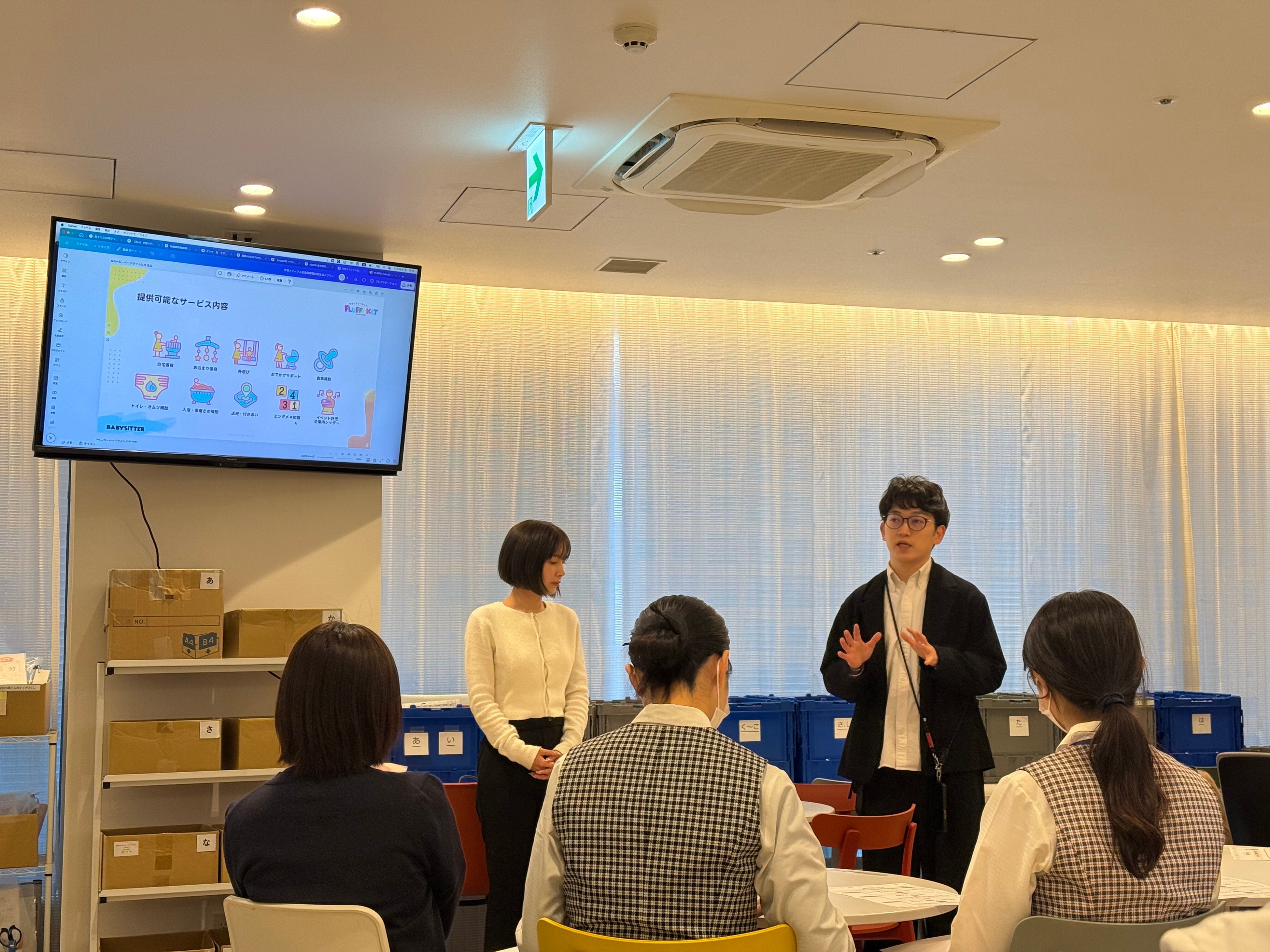 11月28日 汐留メディクス社内にて、株式会社Fluffyketによる育児中の従業員をベビーシッター福利厚生サービスに関する説明会を実施。今後のシッターサービス利用場面や条件など、様々な質問や議論が行われました