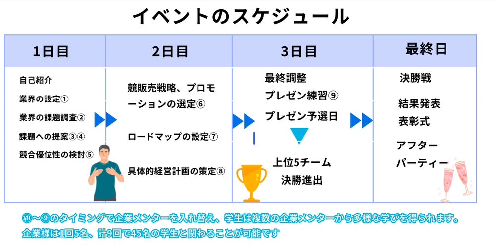 私たちは、「挑戦することの楽しさ」と「仲間と成長する喜び」を多くの学生に伝えたいと考えています。このイベントが、皆さんにとって人生の転機となるような経験になることを願っています。