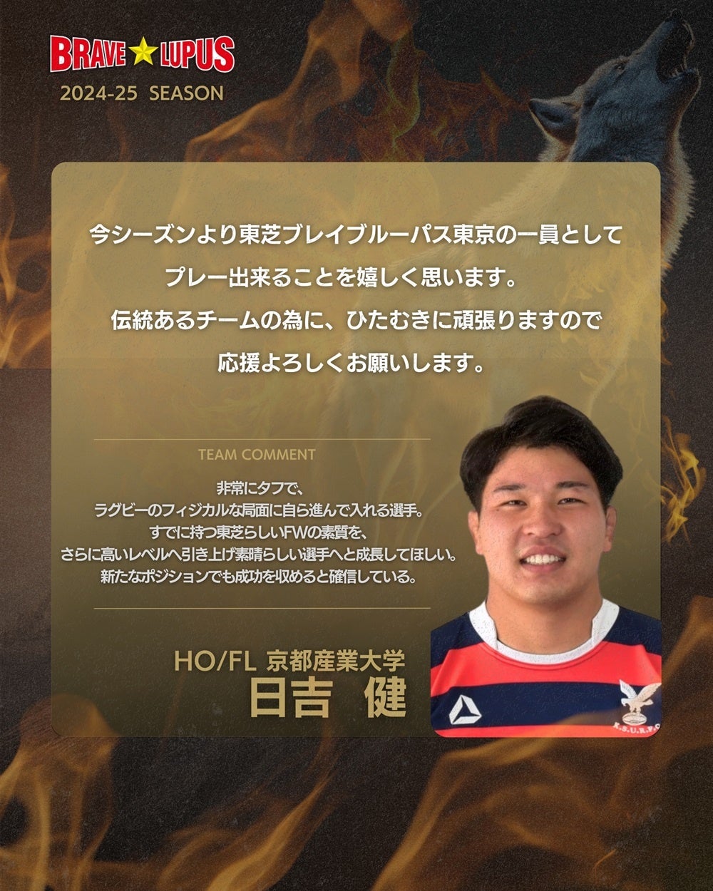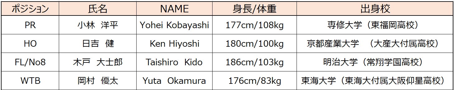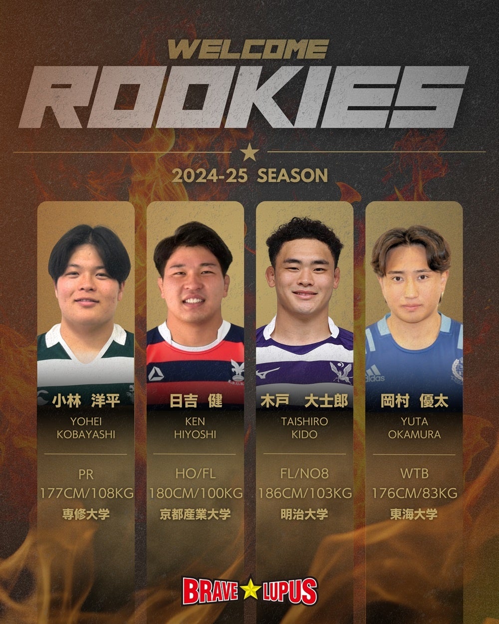 この度、2024-25シーズンのアーリーエントリー選手である4名の新加入選手を下記の通りお知らせいたします。
