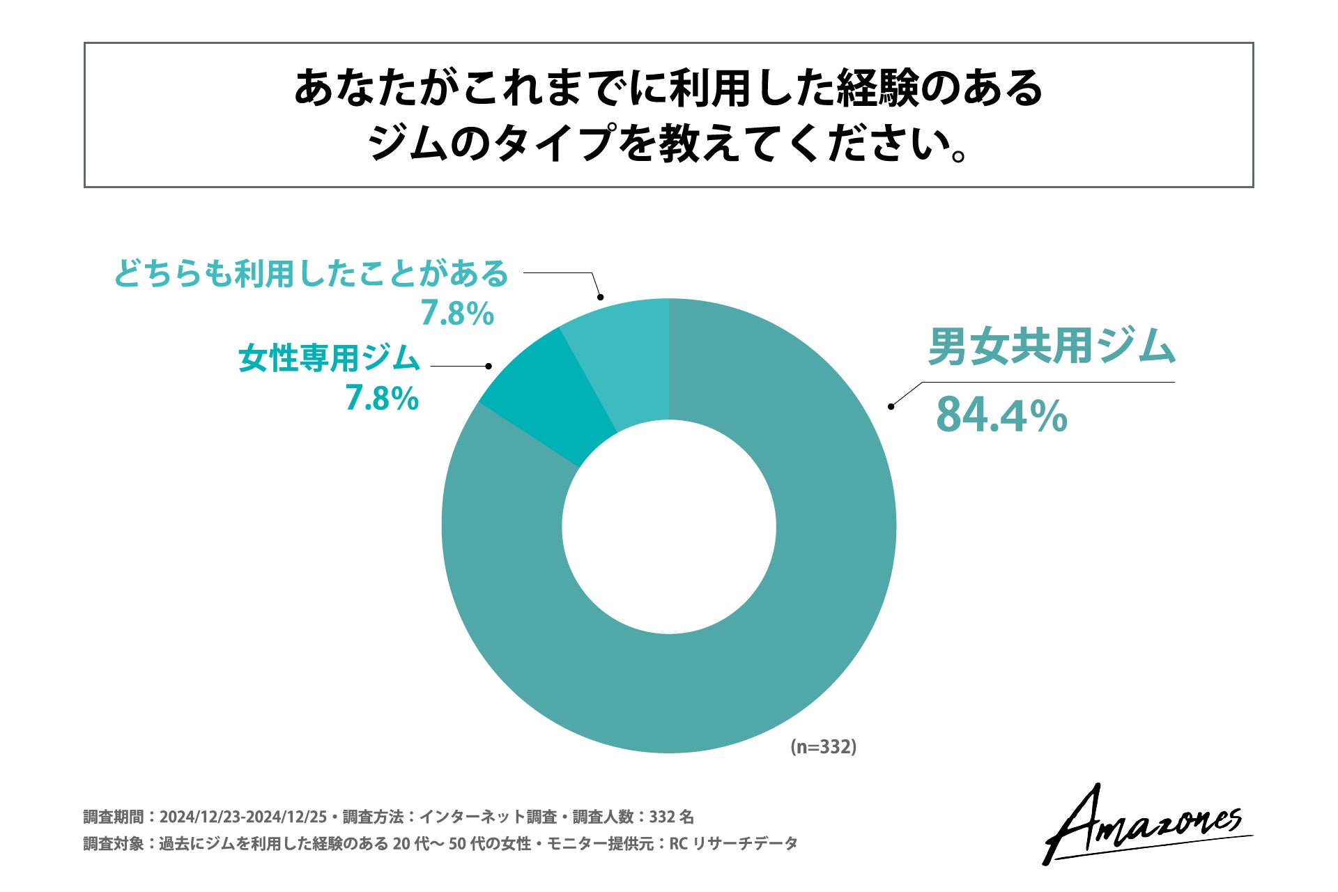 過去にジムを利用した経験のある20代~50代の女性の80%以上が、「男女共用ジム」を利用している