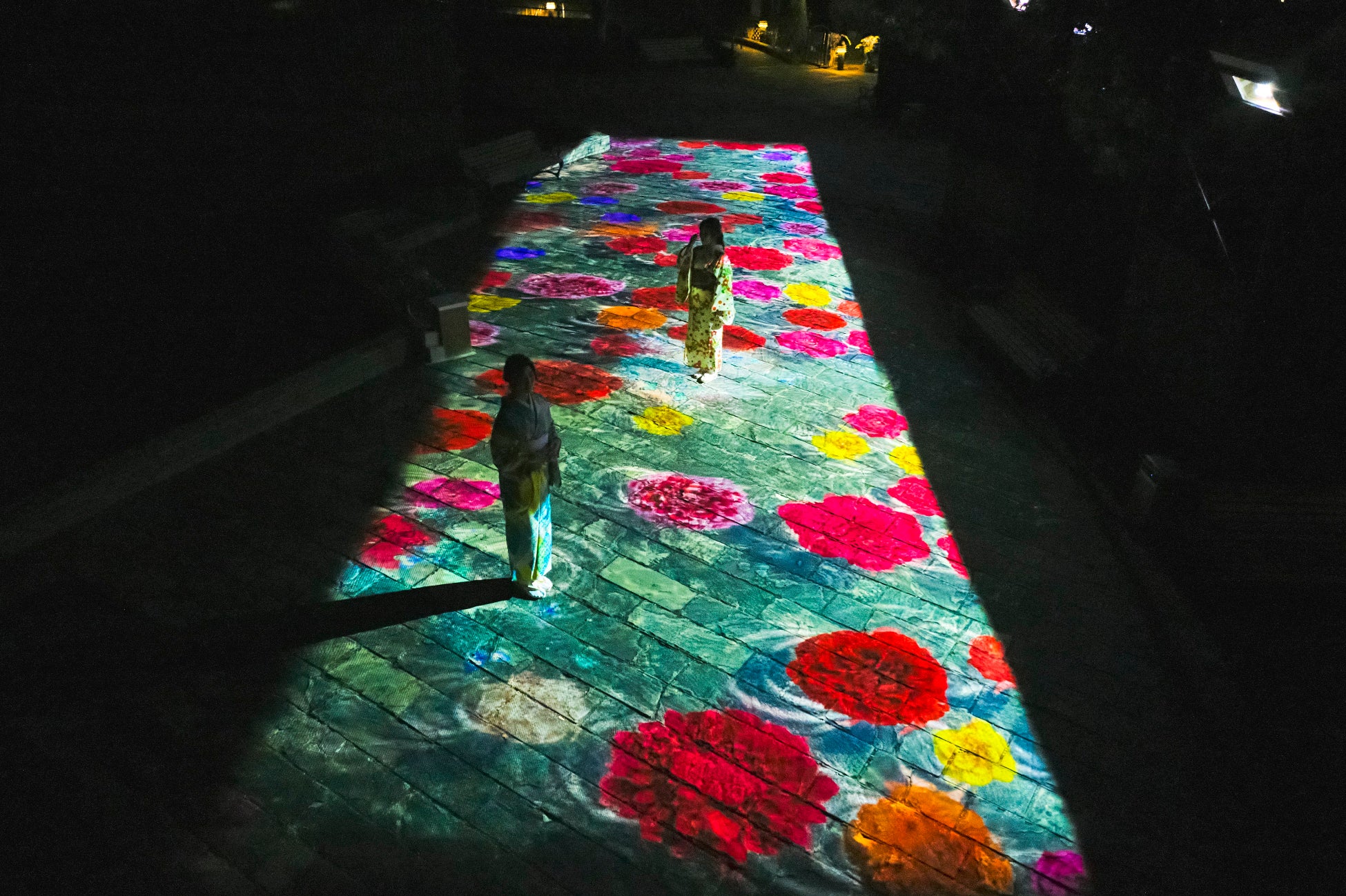 演出のテーマは「ピンカートンと息子との別れ」、そして「蝶々夫人の名誉のための最後」。蝶が花び らになって儚く散りゆくプロジェクションマッピング映像で表現した作品です。芝生エリアから眺めて 楽しむ、プロジェクション映像に入り込み写真を撮るといった楽しみ方もできます。