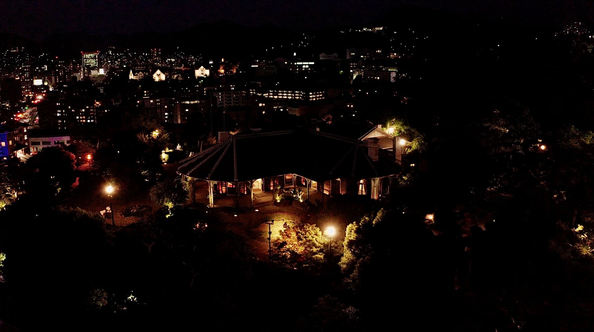 世界遺産旧グラバー住宅、重要文化財旧リンガー住宅など、長崎グラバー園の歴史的文化財の美しさ、 魅力を引き立たせる照明演出と、長崎を舞台としたオペラ「マダム・バタフライ」をテーマとした異国情 緒あふれるジャポニズムの世界観をイマーシブな最新デジタルテクノロジーが演出するプログラムは、 国内外の観光客の注目を集め、夜宴を華やかに盛り 上げます。また、グラバー園から見る夕暮れのマジックアワーは絶景の美しさ。光と色が交差するビジ ュアルコンテンツが、長崎のクリスマスシーズンを鮮やかに彩ります。