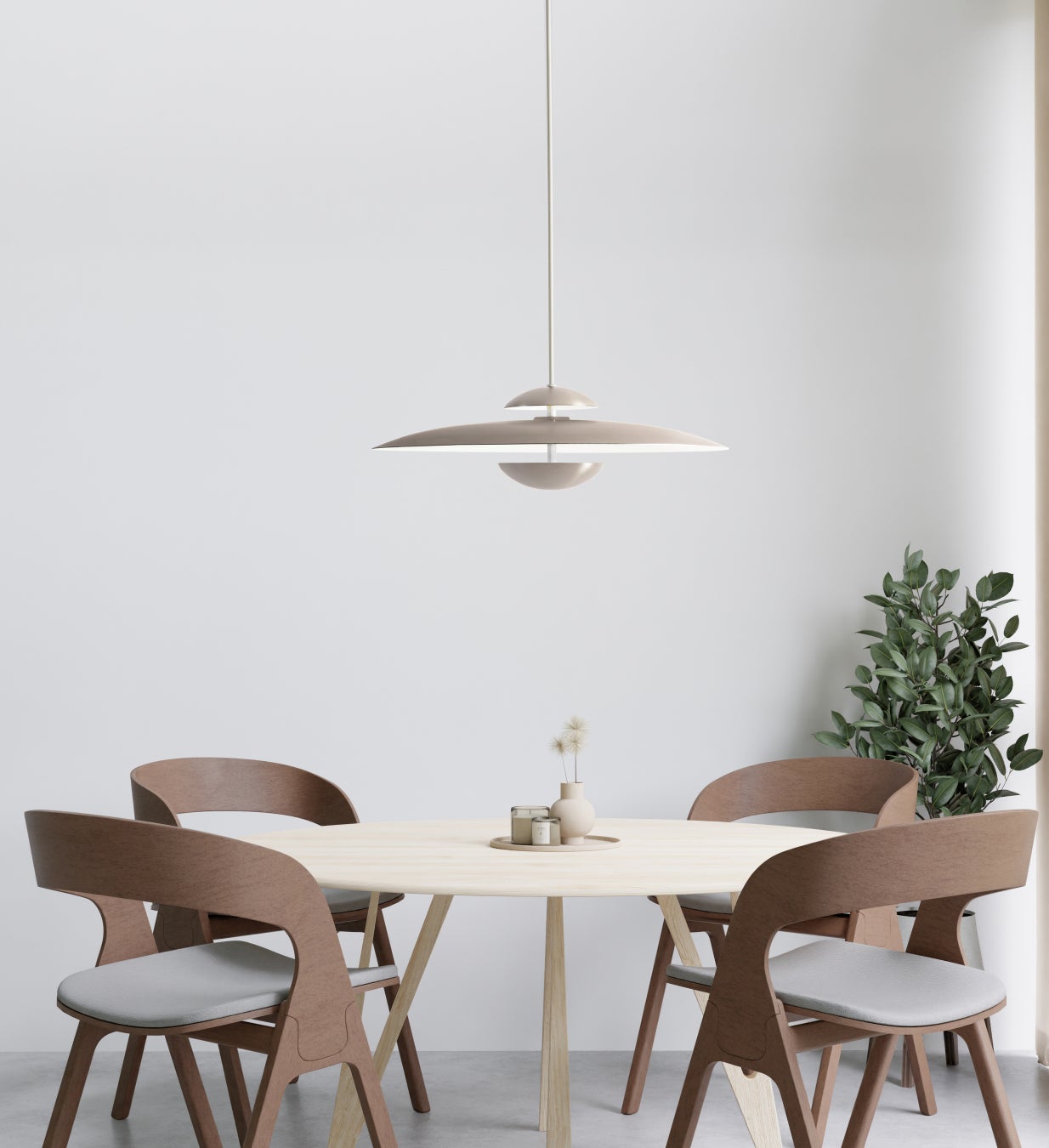 この新ブランドのプロダクトラインは、自然界にある美しい光をカタチに落とし込んでいくことはもちろん、より自然光に近いLEDを採用し身体への負担を軽減したり、自然素材を用いてあたたかみを伝えたりと、様々な角度から「詩然の光」を追求しています。そのプロダクトは住宅から商業空間まで幅広く対応できる照明をラインナップ。光でリラックスできる贅沢な時間を提供します。
