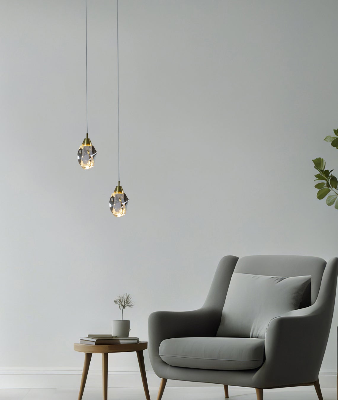 この照明のクリスタルガラスは、自然の氷の雫をイメージし、その形状が光の屈折と反射を美しく引き立てるよう設計されています。試行錯誤を繰り返し、細部にまでこだわり抜いたデザインは、まるで自然の彫刻のよう。光がガラスを通過するたびに、空間に幻想的な輝きが広がり、心地よい雰囲気を作り出します。見る角度によって表情を変えるそのガラスは、まさに芸術作品そのものです。
