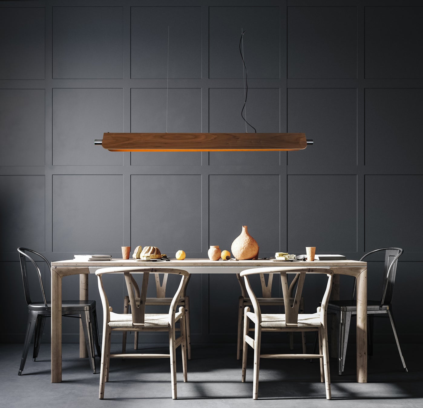 この照明は、一枚の長い木の板を高度な職人技で丁寧に折り曲げて作り上げられています。木材の温かみと柔らかな曲線が調和し、自然素材の美しさを存分に楽しめるデザインです。木の板を一体成型することで、接合部分が見えないシームレスな仕上がりを実現。これにより、どの角度から見ても洗練されたフォルムが際立ち、空間に上質なアクセントを加えます。光源には、温かみのある光を放つLEDモジュールを採用しています。このLEDは、従来の光源と比べてエネルギー効率が高く、長寿命で環境に優しいのが特徴です。明るさはもちろん、光の色温度にもこだわり、まるで自然の光に包まれているかのような心地よさを感じられる照明を実現しました。