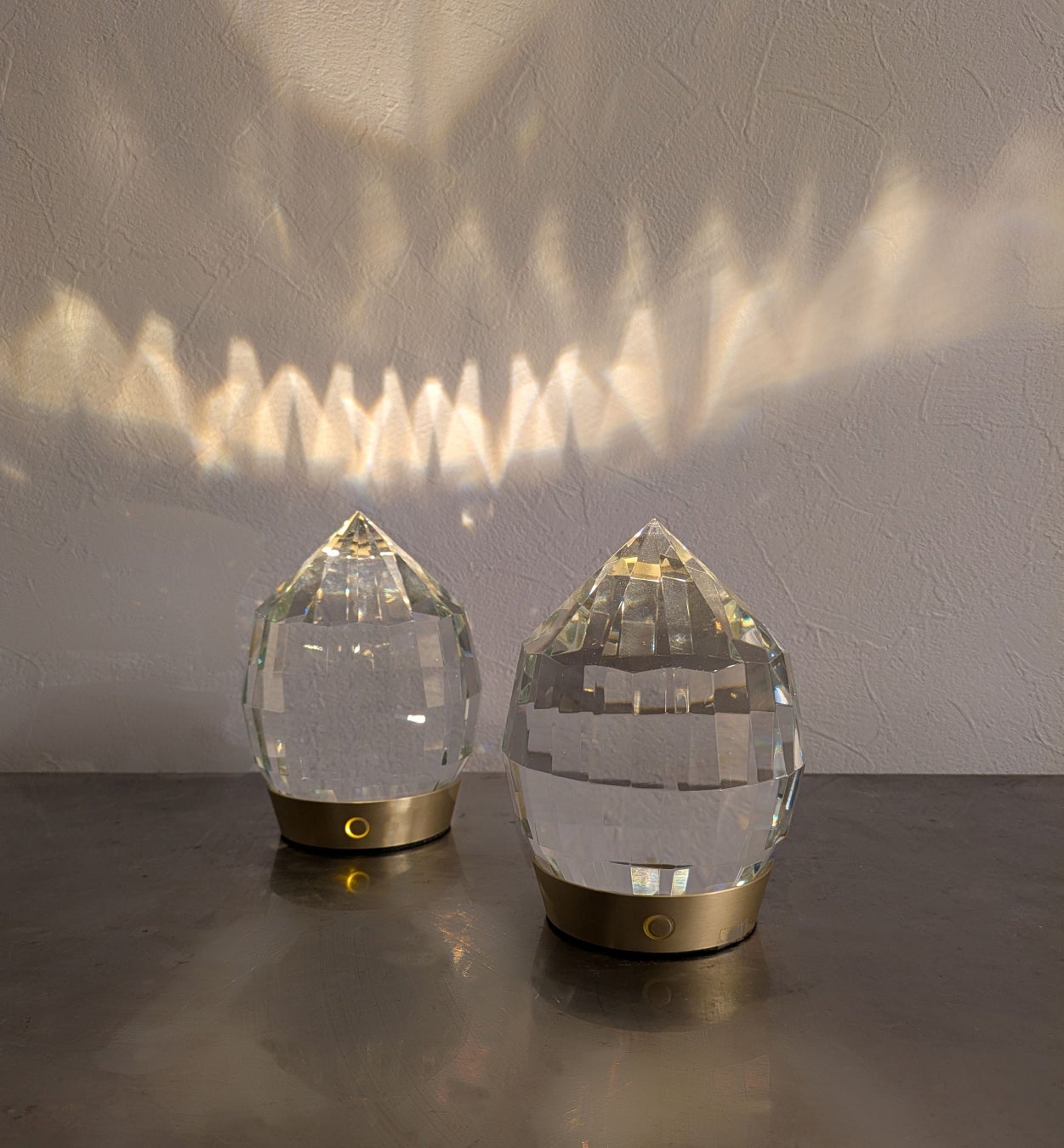 光の屈折や乱反射を最大限に活かすため、ガラスの表面には高度な加工技術が施されています。コードレス設計により、置く場所を選ばず、どこにでも簡単に設置できます。テーブルの真ん中やカウンターの上でも、すっきりとした見た目で空間を邪魔しません。また持ち運びが容易なため、ダイニングやリビング、アウトドアなど、さまざまなシーンで活躍します。充電式のバッテリーを採用しており、一度の充電で長時間の使用が可能。機能性とデザイン性を兼ね備えた照明です。