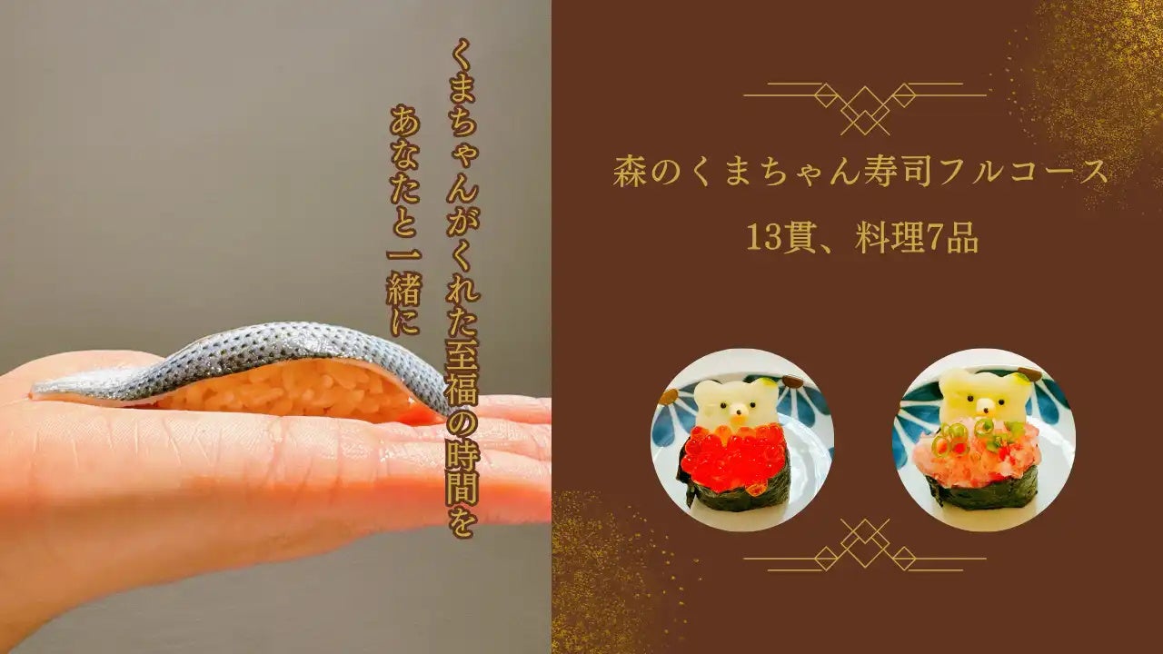 これまでにない美味しく可愛い新感覚のお寿司体験ができるお店として、「森のくまちゃん」をテーマに「kawaii」を追求した新しいスタイルの寿司店です。