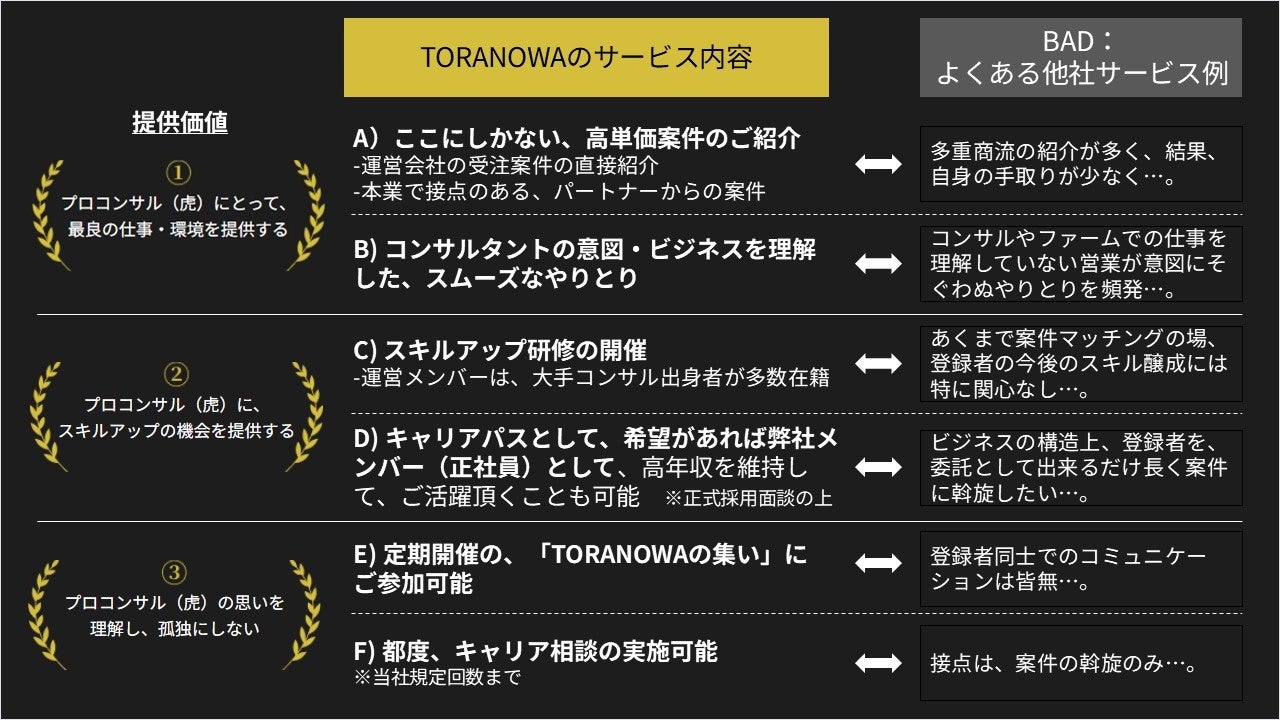 ●提供価値①:プロコンサル(虎)にとって、最良の仕事・環境を提供する