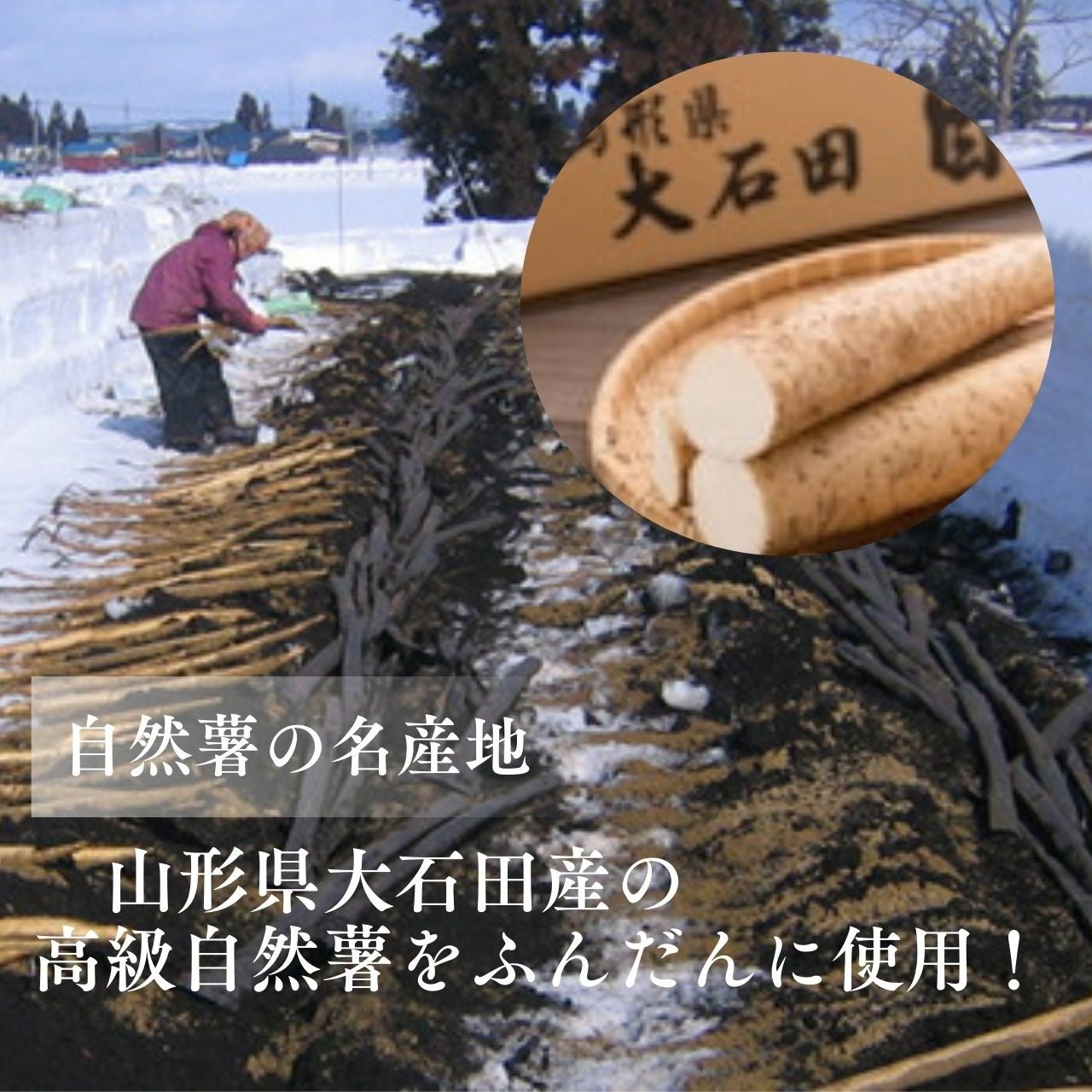 雪中自然薯とは、雪の下に埋めて育てるのが特徴で粘りはもちろん、甘みが他の自然薯とは段違いです。自然薯は抜群の栄養価に富み、滋養強壮・疲労回復にきくと言われています。