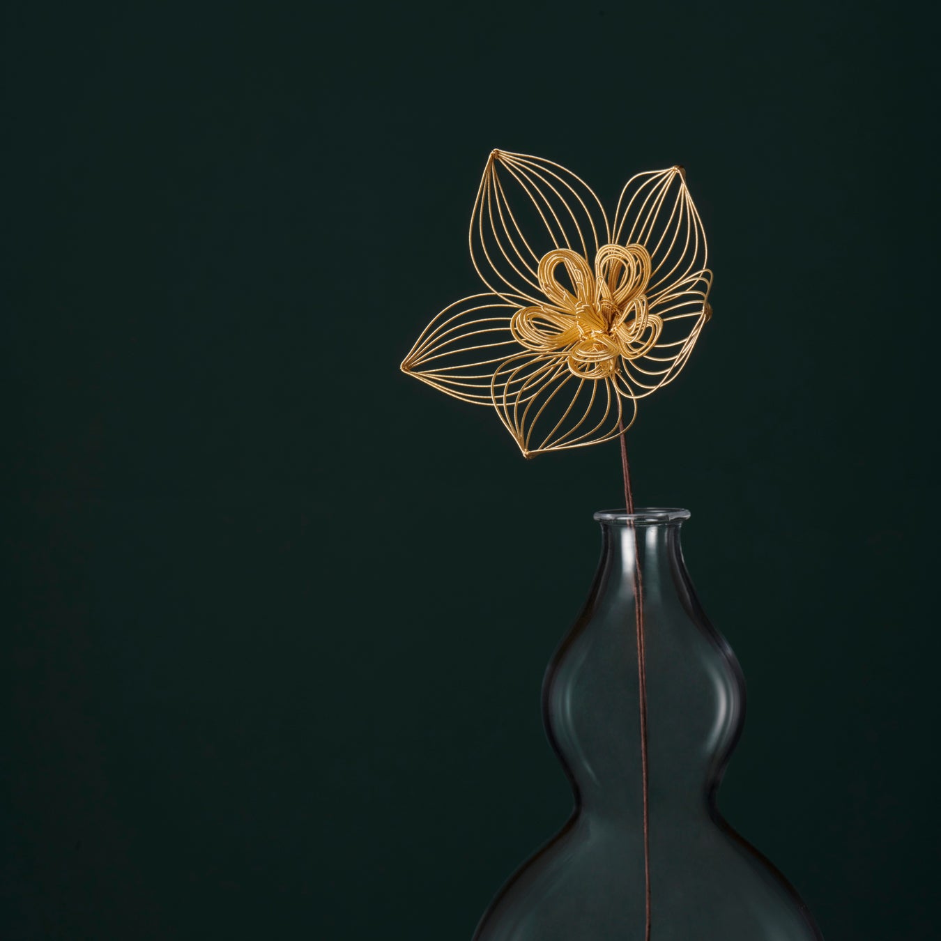 K18で作られた水引の中で一番細いものを使って結ばれたクリスマスローズ。貴金属で作られたとは思えない軽やかさと繊細さに圧倒され、息をのむほどに美しい作品。