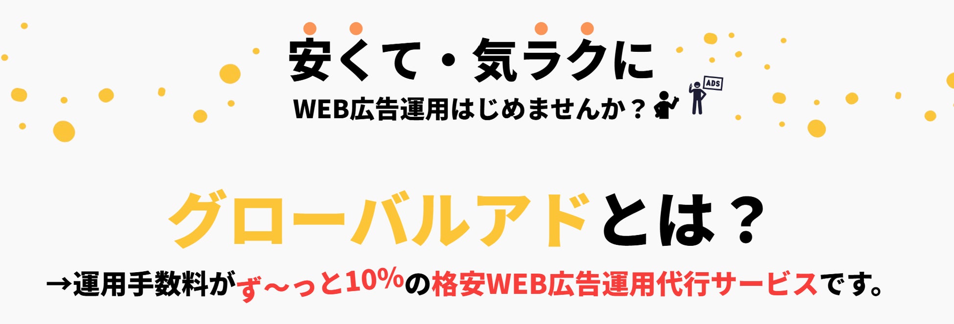 運用手数料10%の【格安】WEB広告運用代行サービス『グローバルアド』|中小企業のWEB集客課題を解決するお役立ちサービス