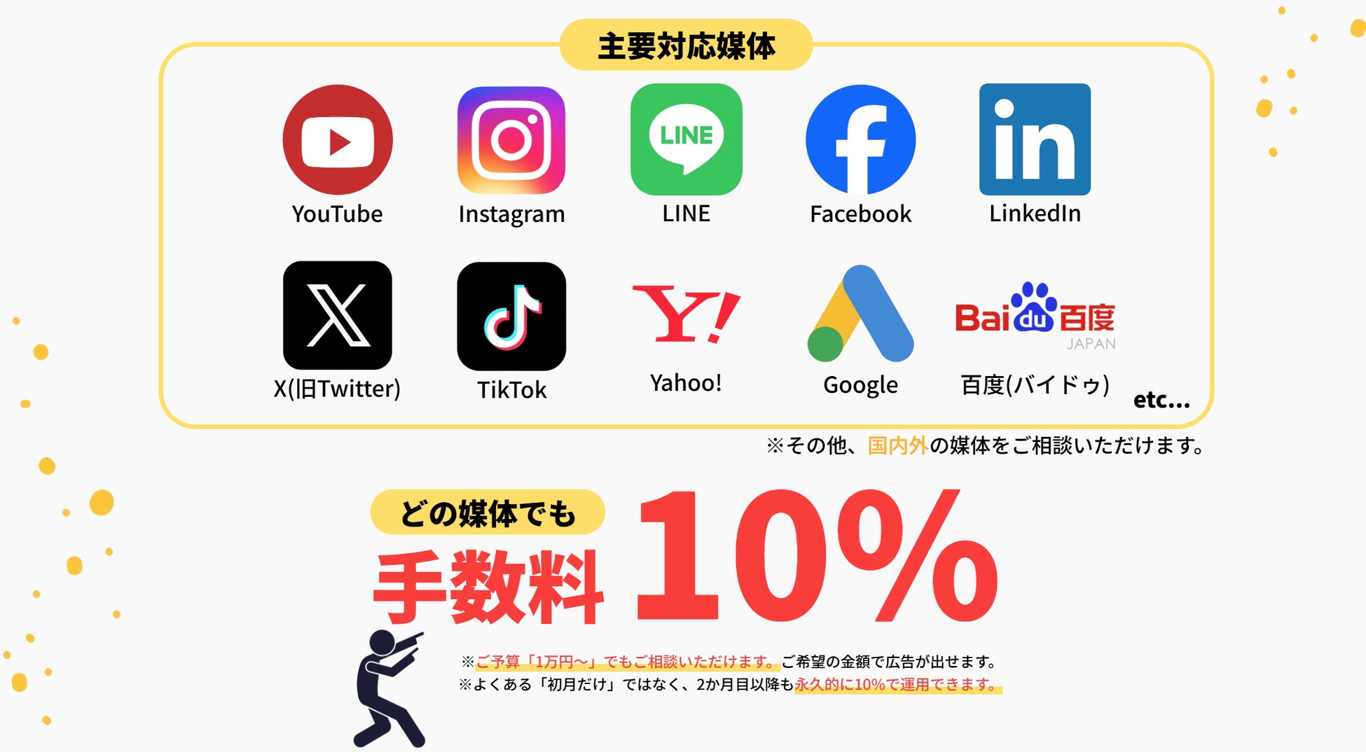 ※その他、国内外の媒体をご相談いただけます。まずは無料相談からお気軽にご相談ください。