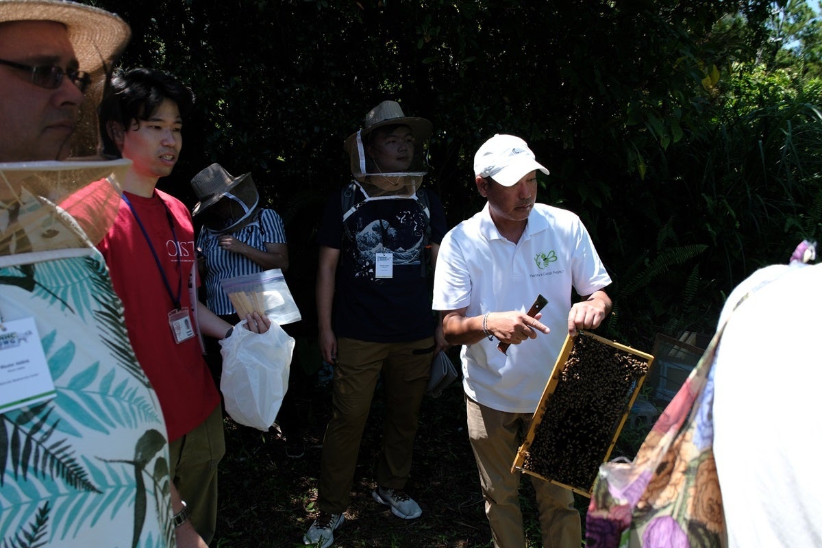 OISTの学生が研究課題をテーマとして講義を行い、さらに養蜂が既存の生態系に与える効果や影響について学生と参加者がグループディスカッションを行う特別なプログラムです。