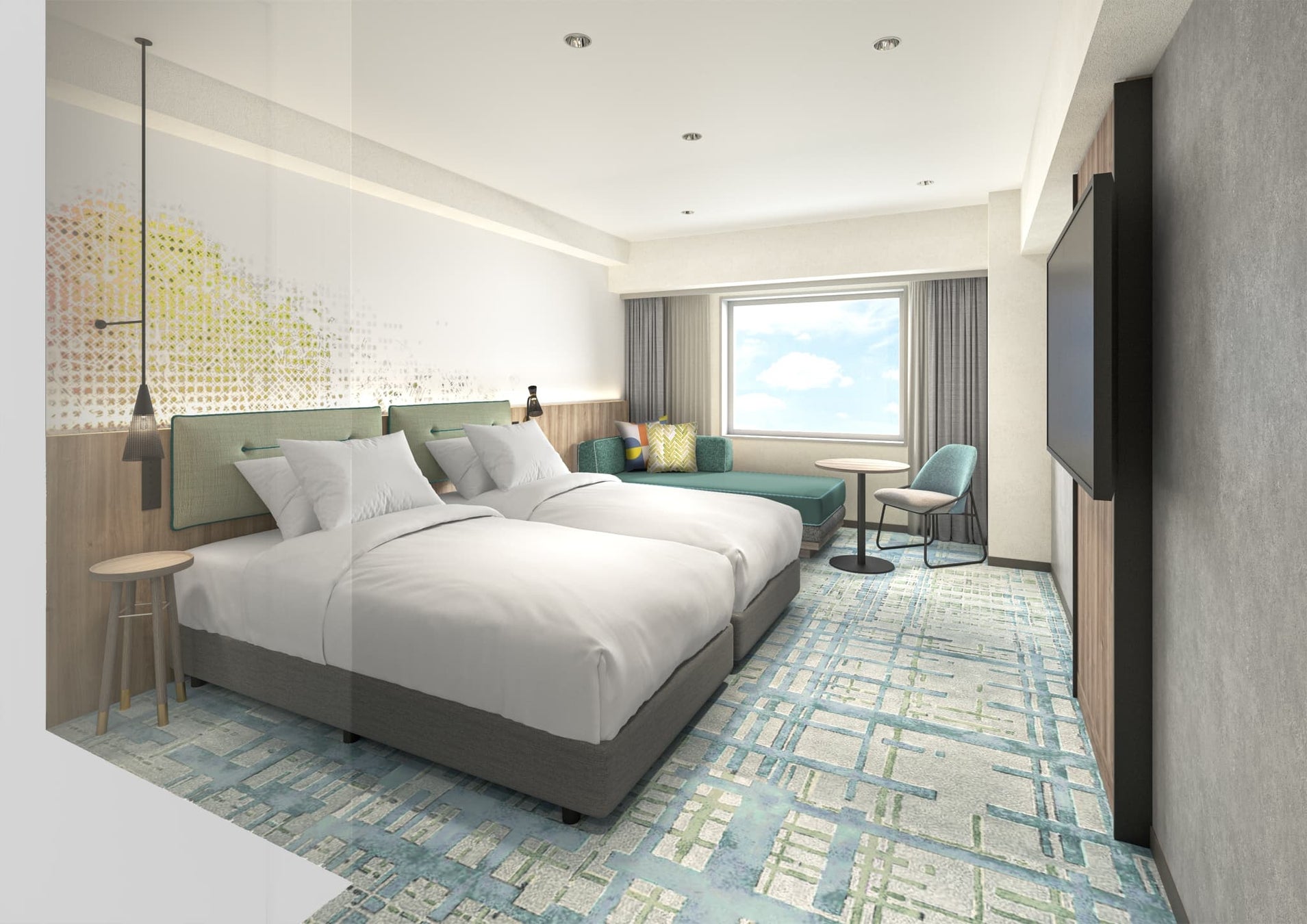 「ホリデイ・イン京都五条」では、明るい色調と快適なアメニティが揃う客室(183室)、