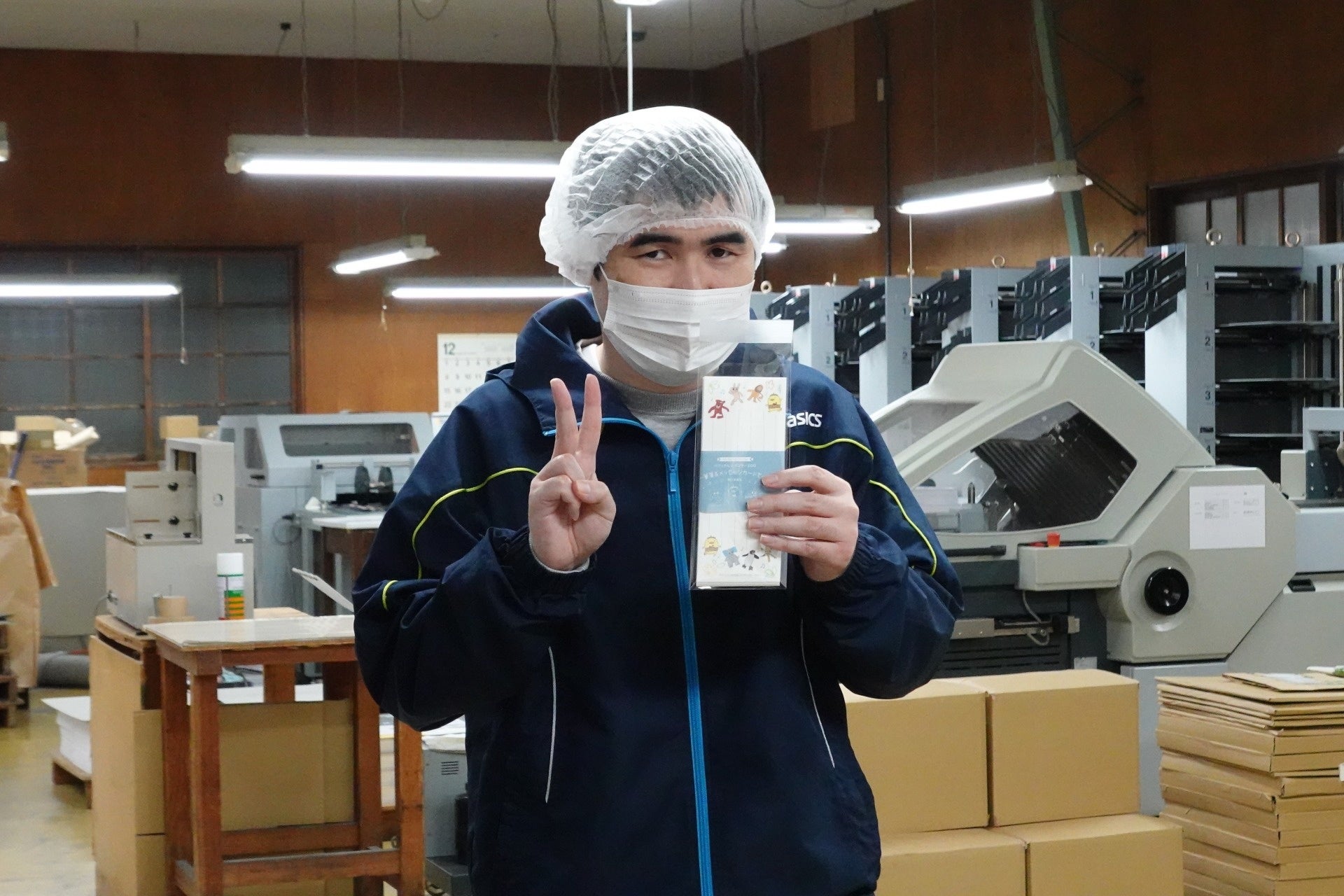 今回、地元のクリエイティブ集団である第一印刷に、私たちの運営する施設をご利用いただく長谷部克夫さんの描く素敵な動物たちのことを目に留めていただき、さらにはこんな素晴らしい商品を作り上げていただいたこと、心から感謝しています。12月4日にお伺いした工場見学では、いつもより興奮した様子の長谷部さんから「バリィさんと一緒にありがとうございました」と職員へ話しかける様子もあり、職員とともに幸せをかみしめています。