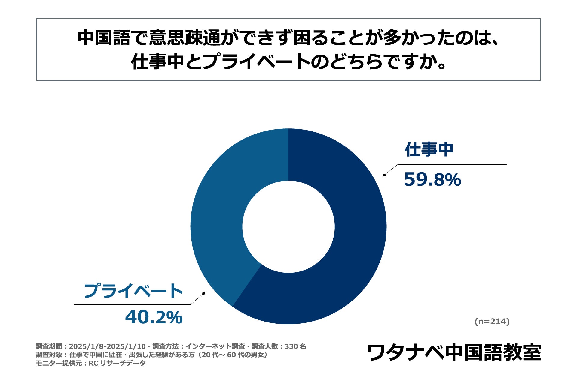 中国語で意思疎通ができず困るのはプライベートより、「仕事中」の方が多い