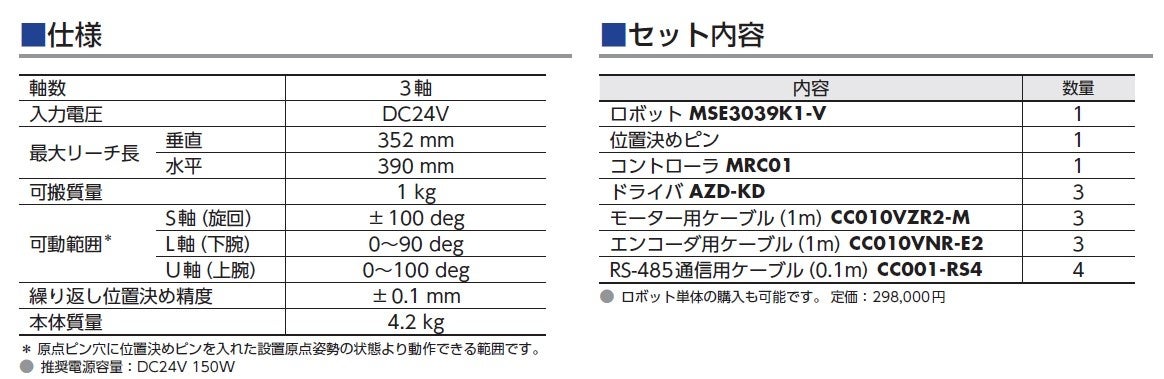 教育用ロボット 単体(MSE3039K1-V) 定価 298,000円