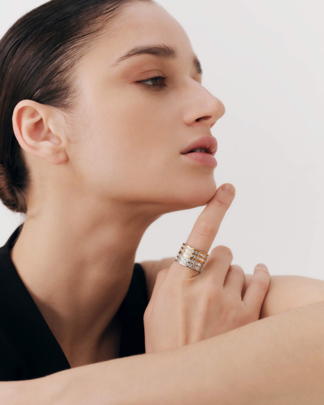今シーズンのビジュアルではストーンアクセサリーを多く使い、普段使いだけでなくフォーマルでも利用できるイメージを展開しています。