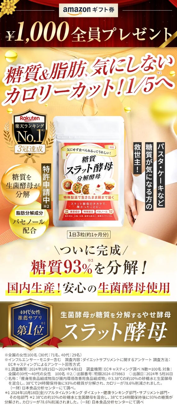 •対象商品: 体質サポートサプリ「スラット酵母」